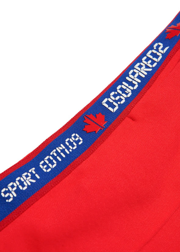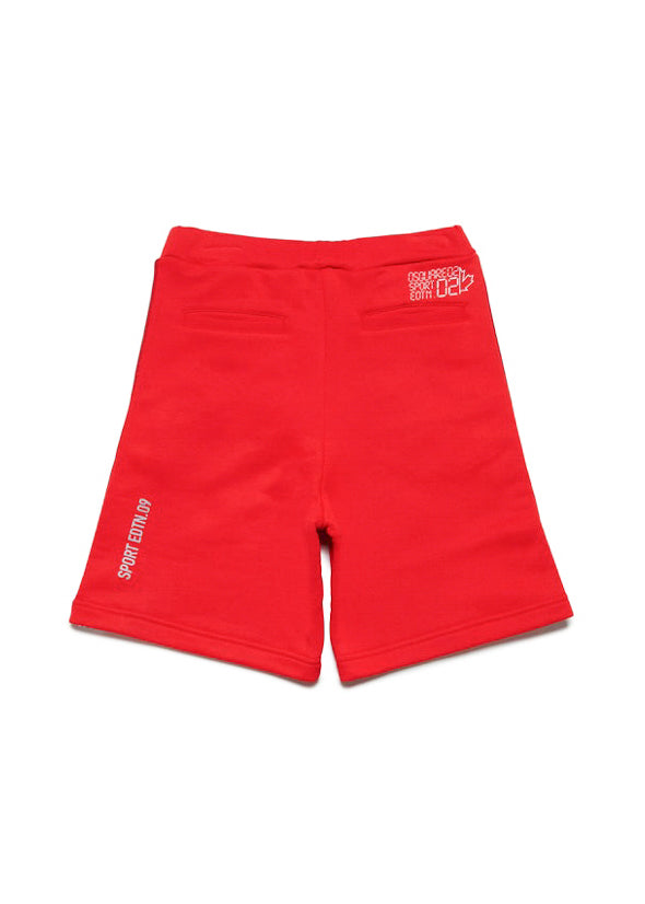 These red shorts for boys by Dsquared2, part of the Sport Edtn.09 collection, available on Florence Kids, are a sporty essential enriched with iconic details. Made of technical fleece, they offer comfort and freedom of movement thanks to the elastic waistband. The logo band along the sides and the digital print on the back in thick rubber add a distinctive touch to the design. Reflective details on the back represent the collection's identifier, adding functionality and style. With front pockets and back welt pockets, these shorts are ideal for everyday activities or for free time. Perfectly paired with the coordinated t-shirt, they create a complete outfit that is visually impactful and comfortable.