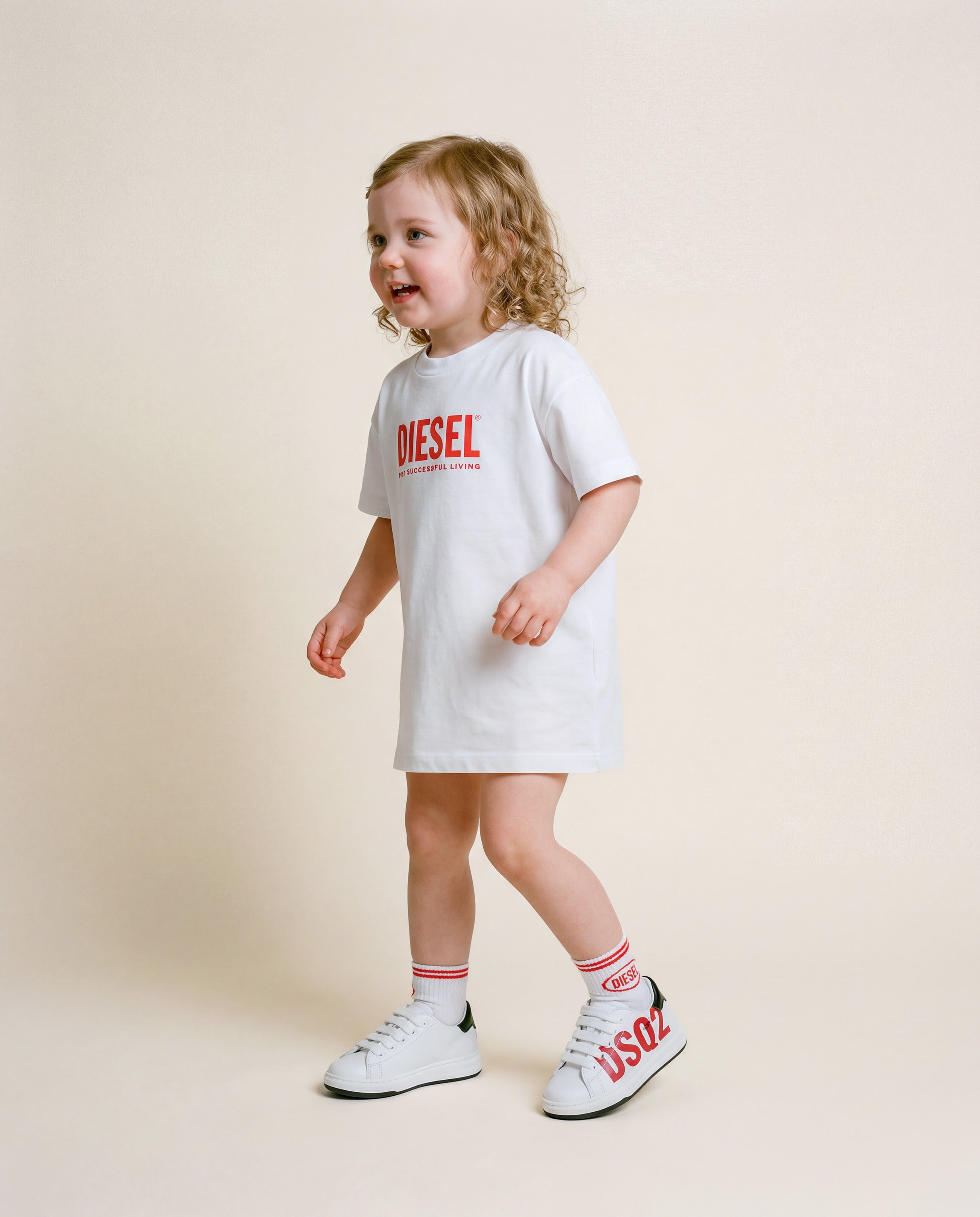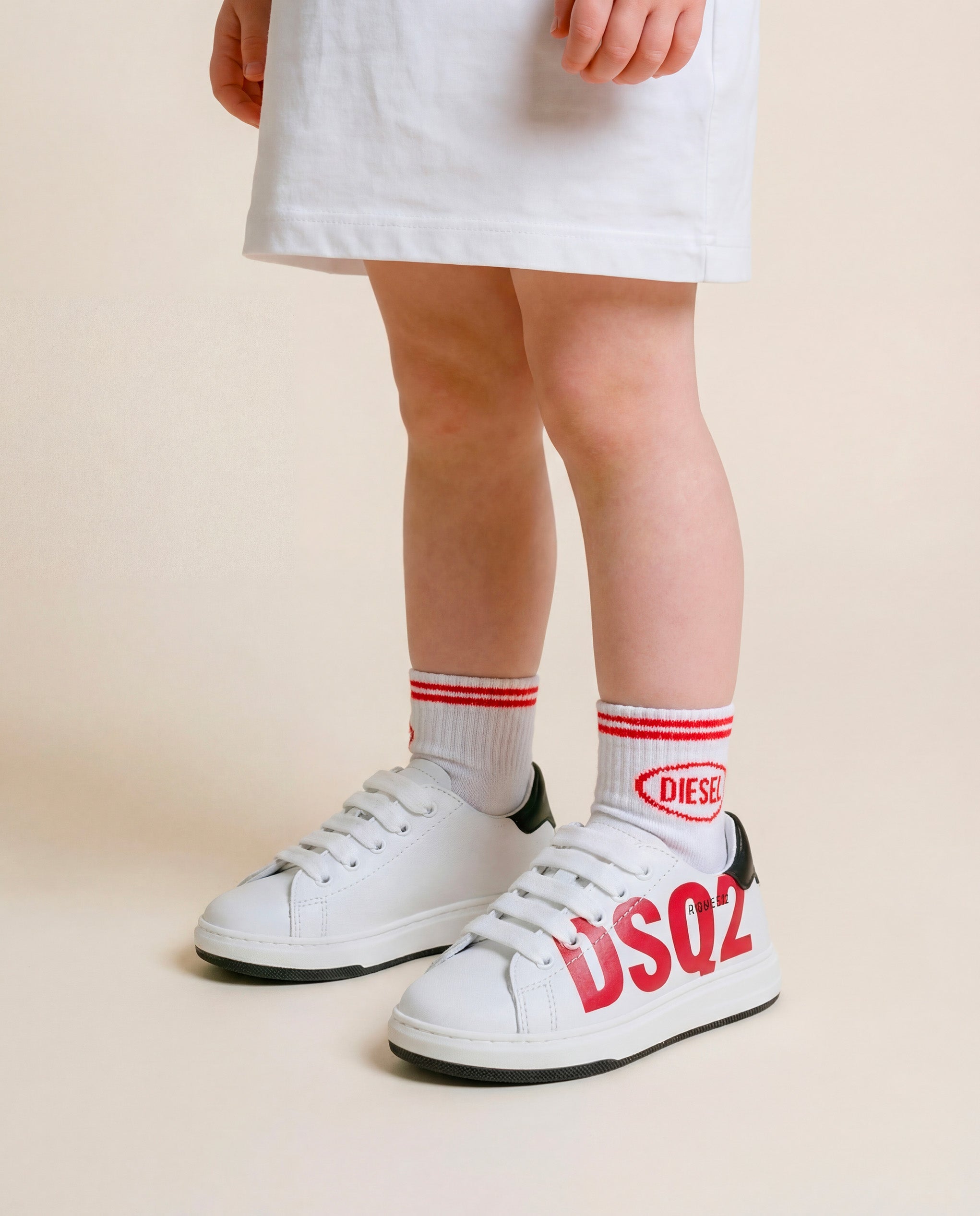 Dsquared2 Kids Sneakers Bianco con Logo Rosso per Neonati