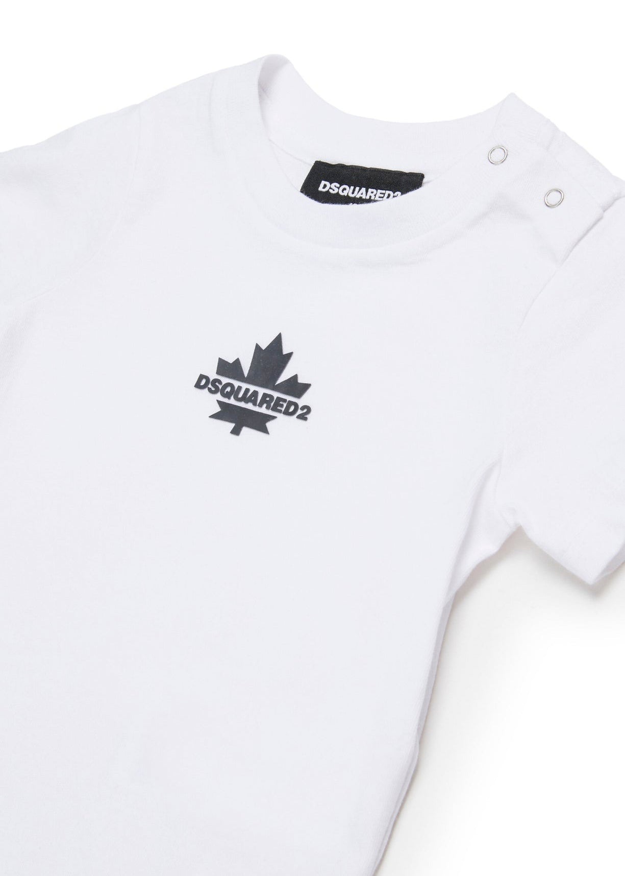 Dsquared2 Kids White T-shirt with Leaf Print for Babies