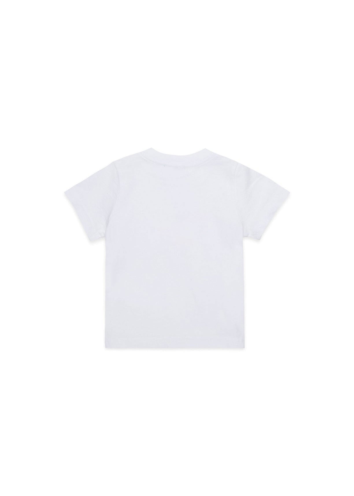 The white Dsquared2 Kids t-shirt for newborns is a casual and iconic garment, perfect for a trendy look from the first months. Made of soft cotton, it features a print with the characteristic maple leaf and the Dsquared2 logo on the front. The snap button closure on the shoulder ensures ease of dressing, making it practical and comfortable for any occasion. A must-have for little fashion lovers, available on Florence Kids!