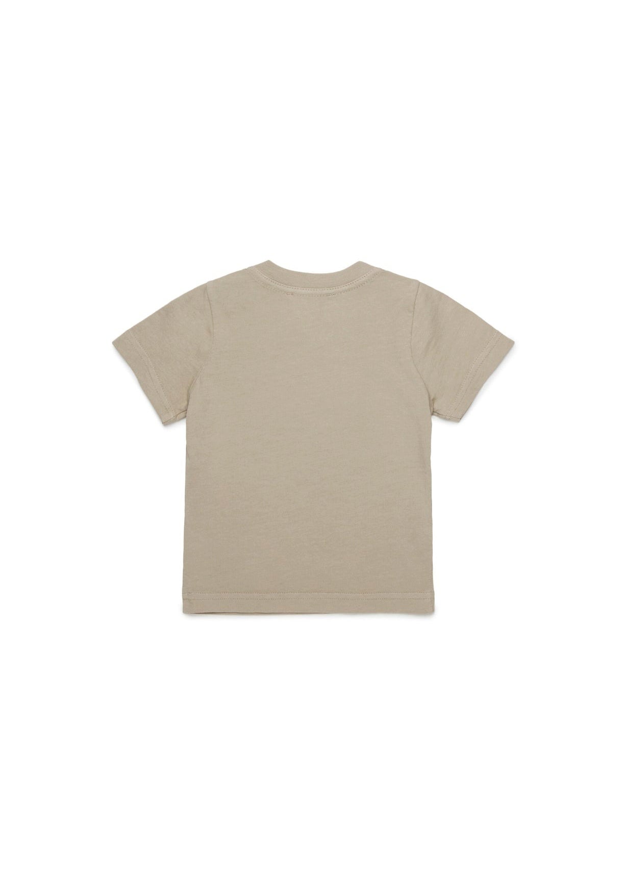 The beige Dsquared2 Kids t-shirt for newborns is a casual and iconic garment, perfect for a trendy look from the first months. Made of soft cotton, it features a print with the characteristic maple leaf and the Dsquared2 logo on the front. The snap button closure on the shoulder ensures ease of dressing, making it practical and comfortable for any occasion. A must-have for little fashion lovers, available on Florence Kids!
