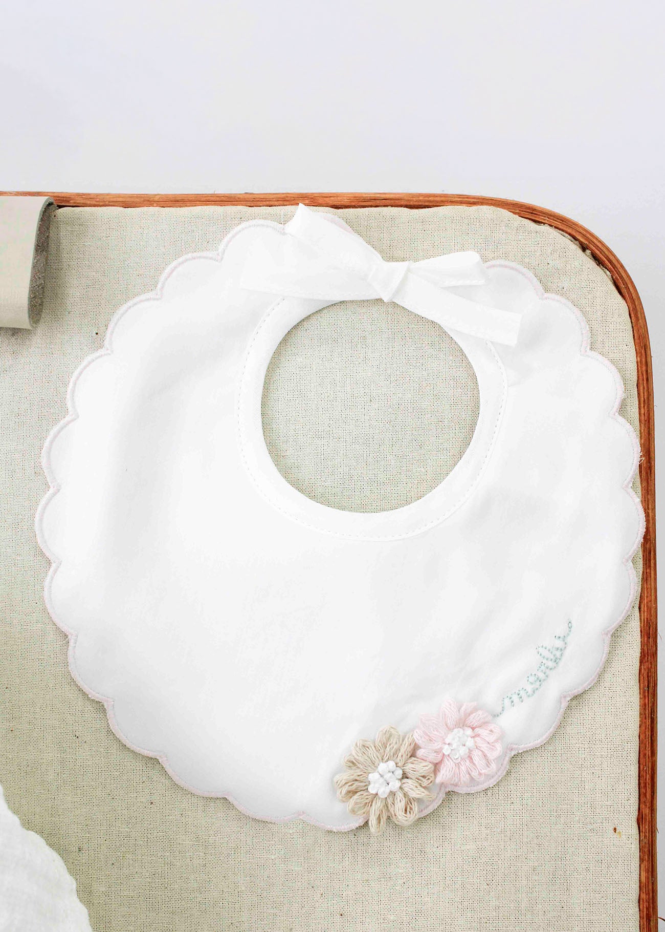 Marlù White Bib with Flower Embroidery for Newborn Girls