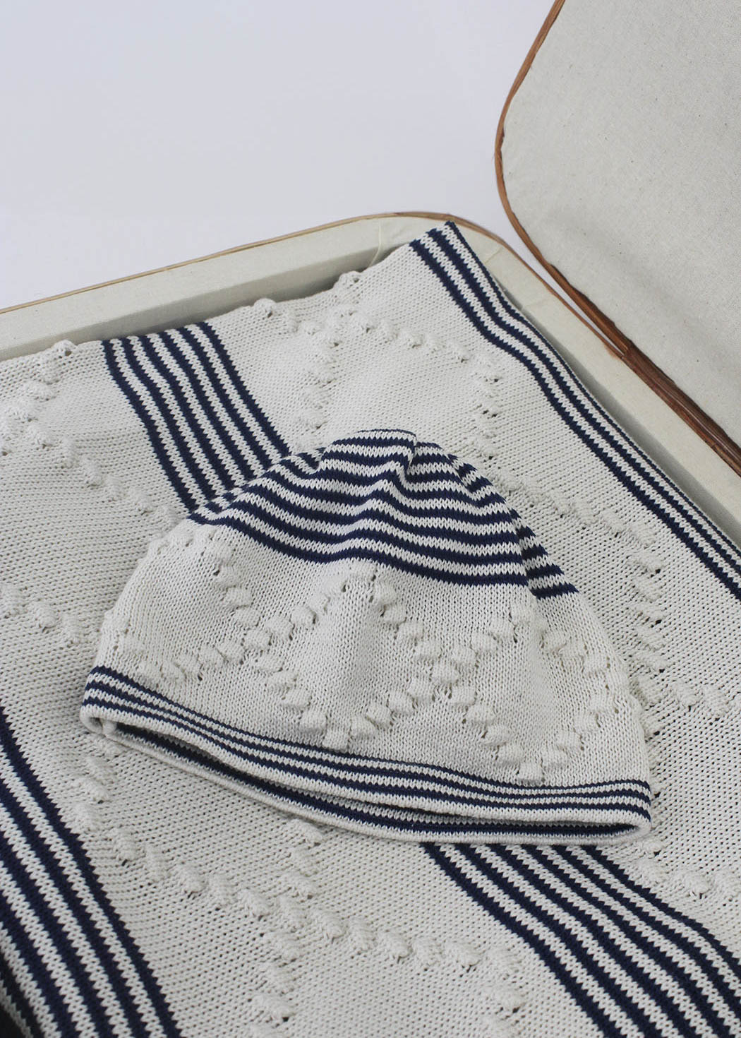 Marlù White/Blue Striped Hat for Newborns - Florence Kids