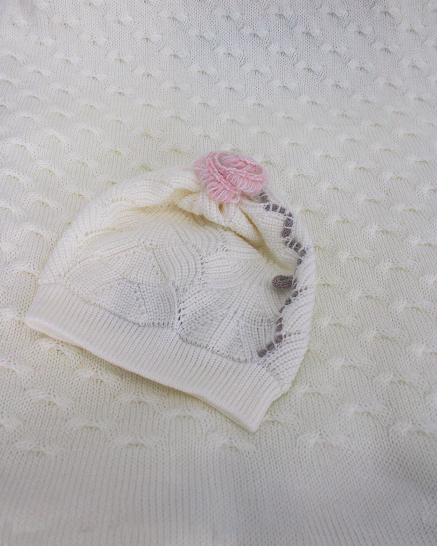 Marlù Cappello Vaniglia con Rosa per neonate - Florence Kids