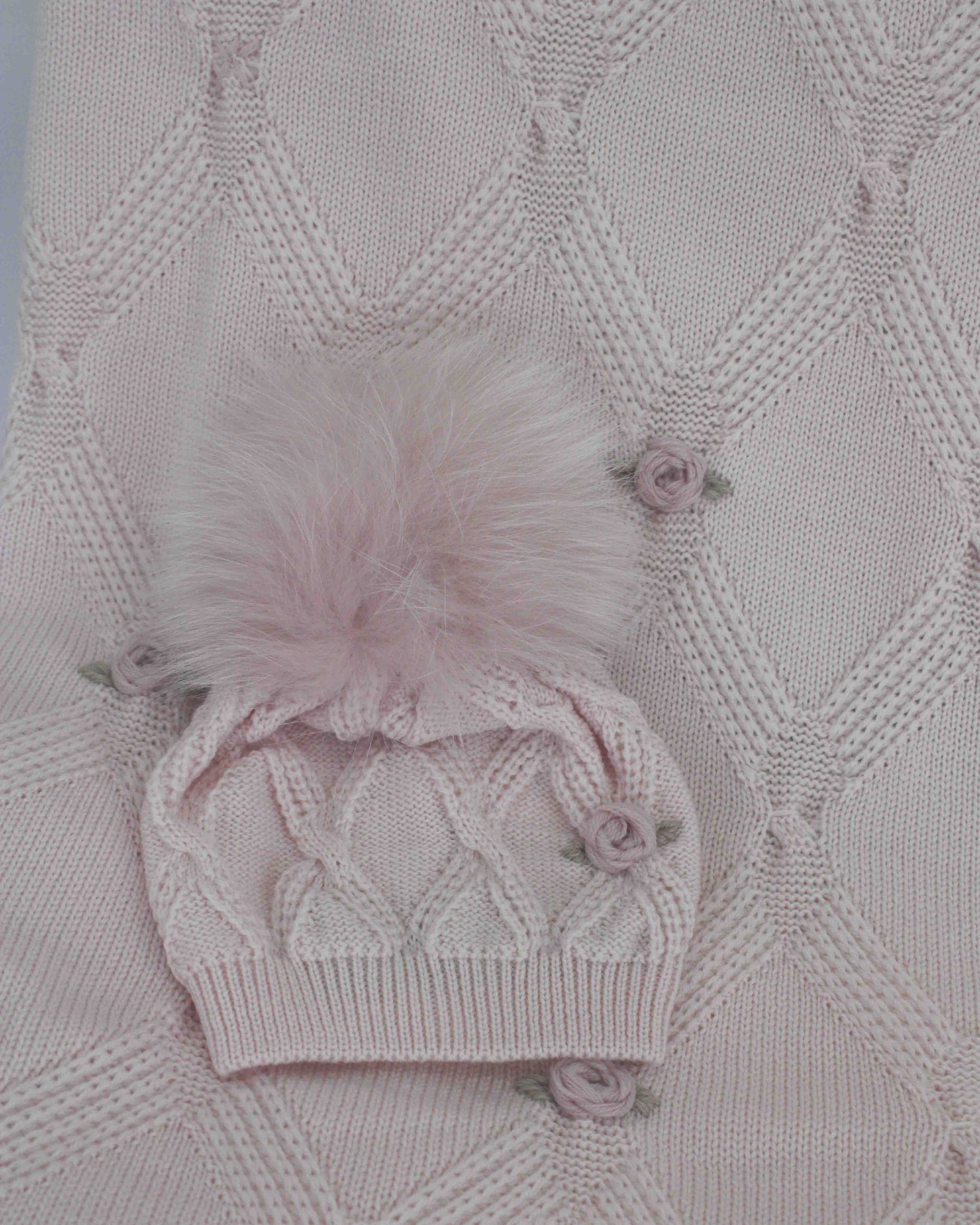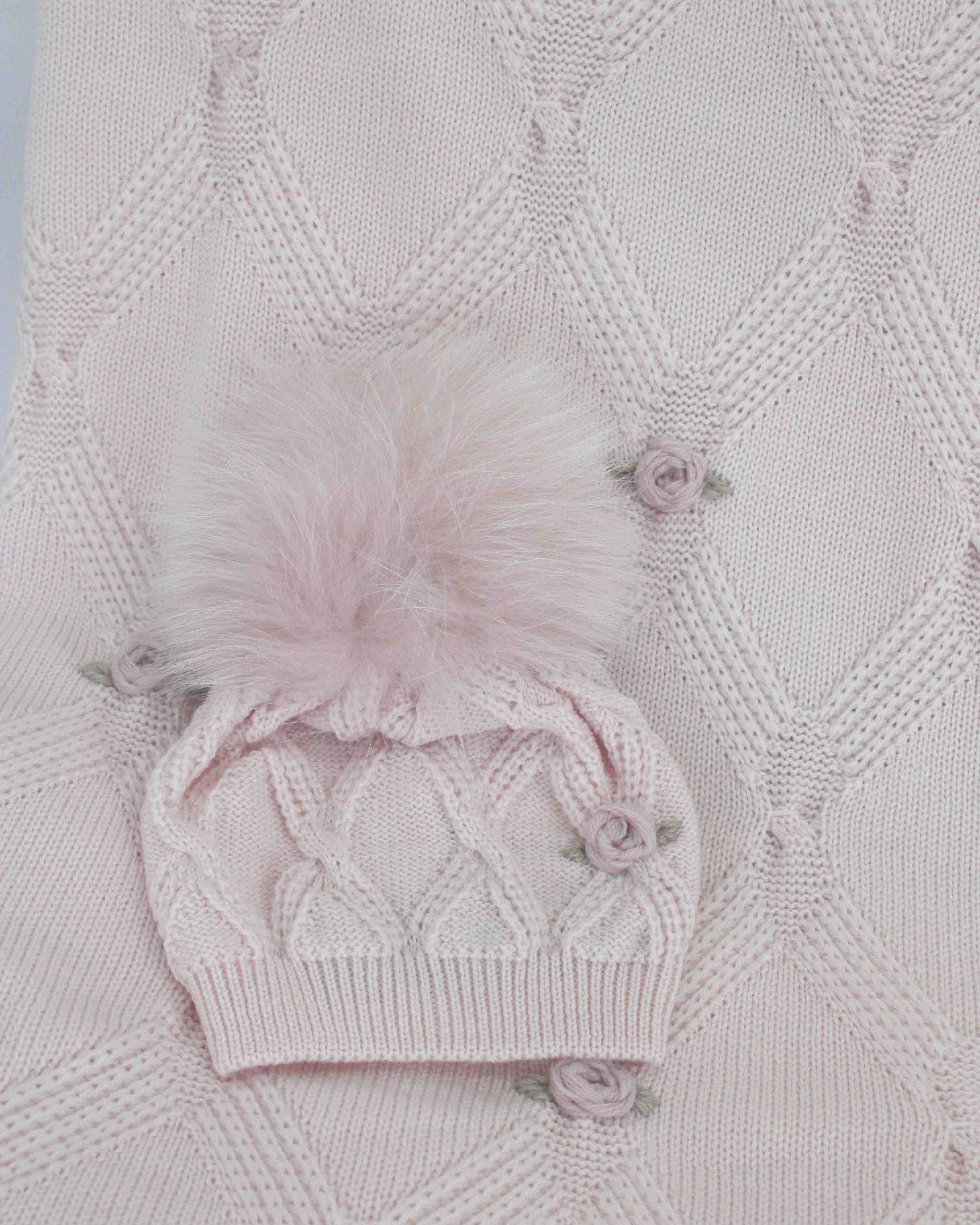 Marlù Cappello Rosa con Ricamo Fiore e Pon Pon per Neonate - Florence Kids