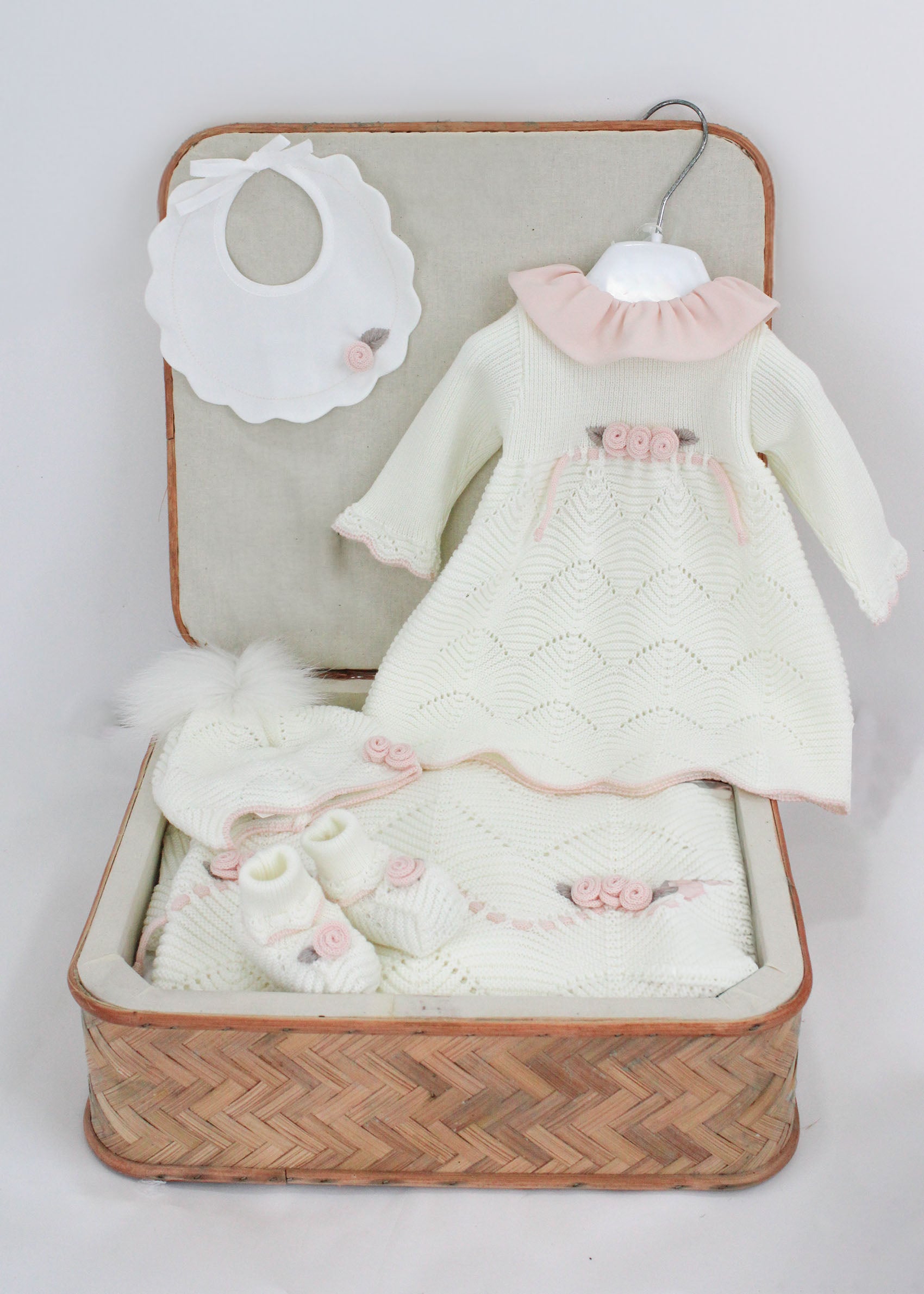 Marlù Vanilla/Peach Pink Layette with Dress for Newborns