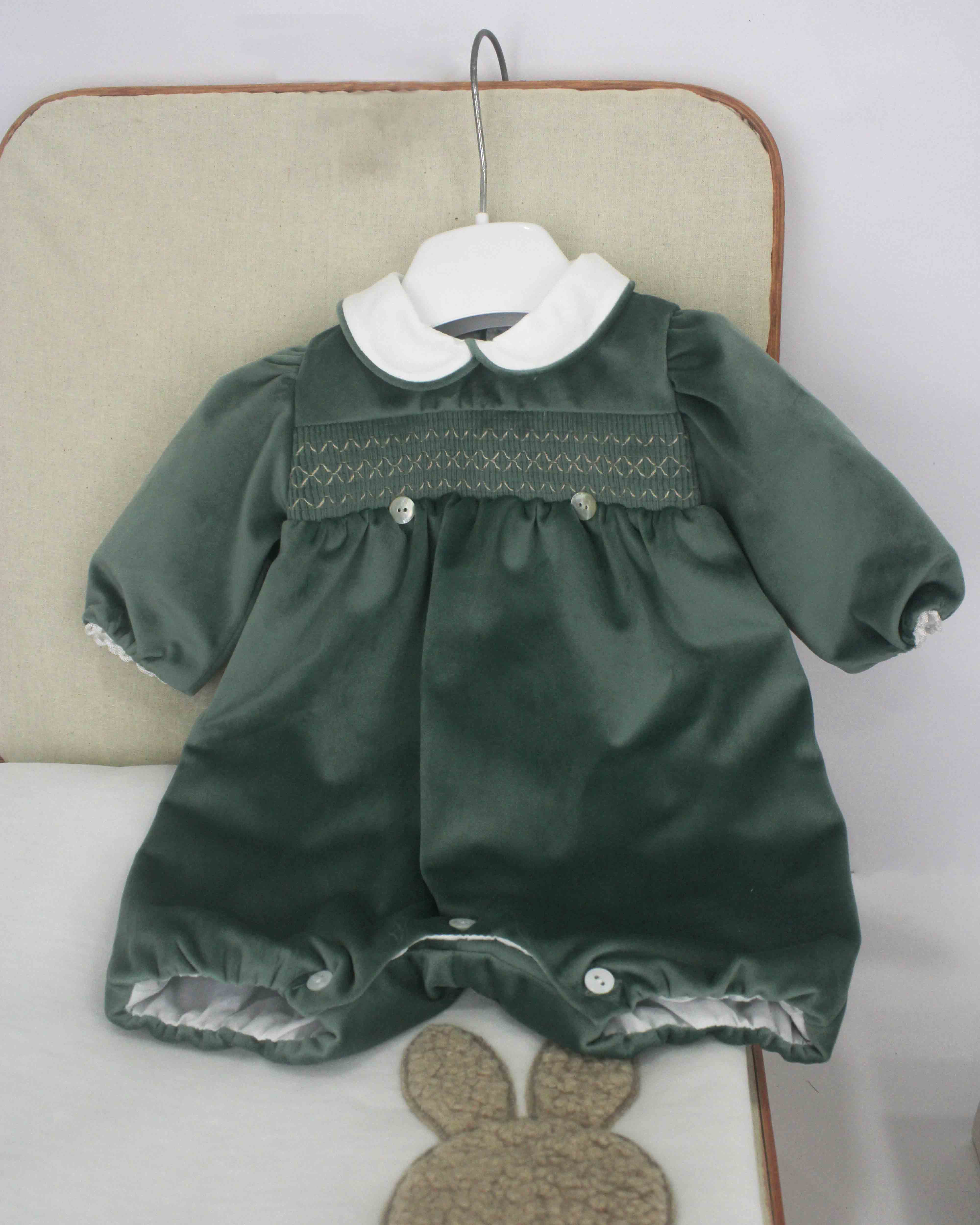 Marlù Pagliaccetto verde salvia con ricamo per neonate