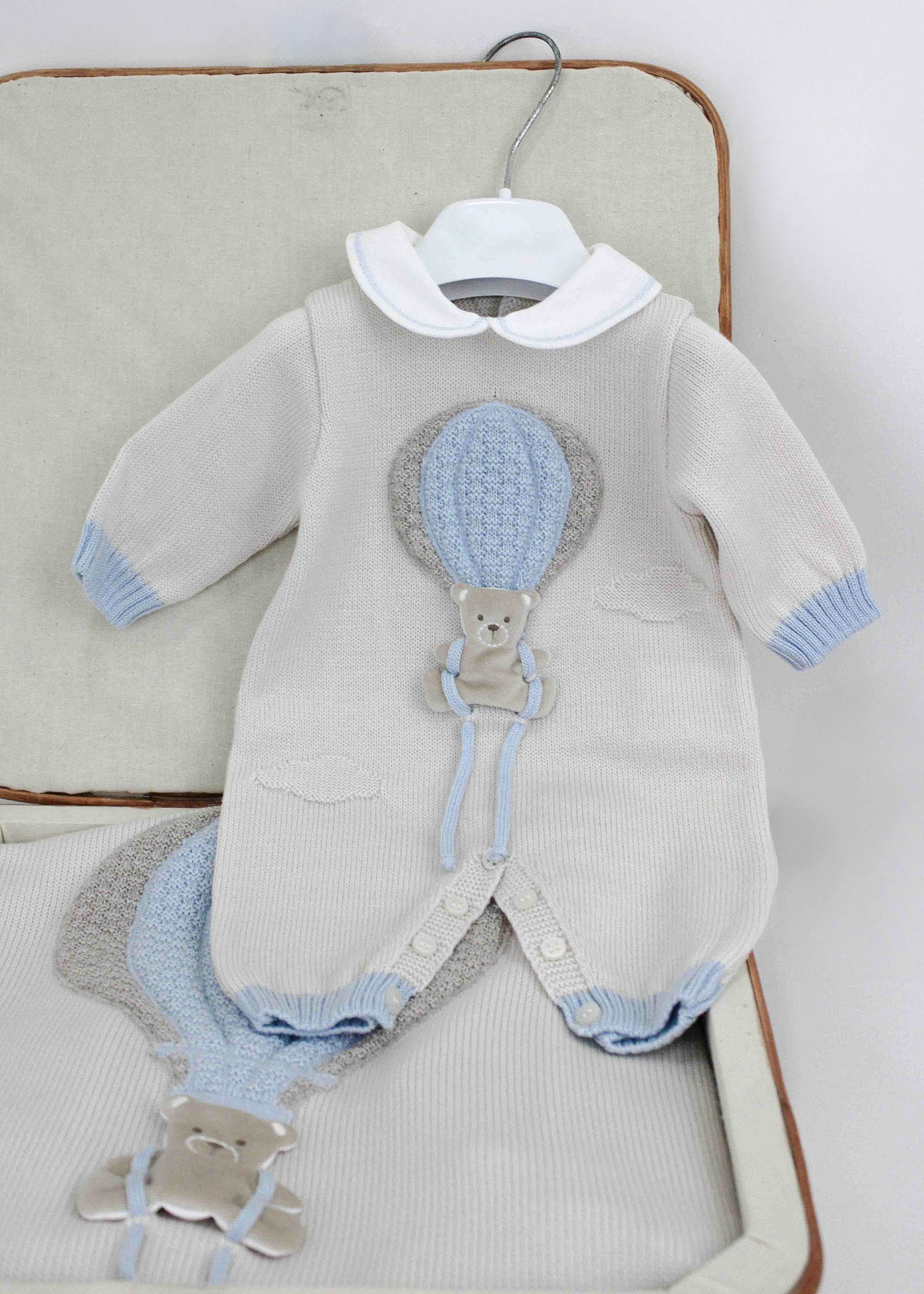 Marlù Babygrow Light Blue/Beige with Embroidery
