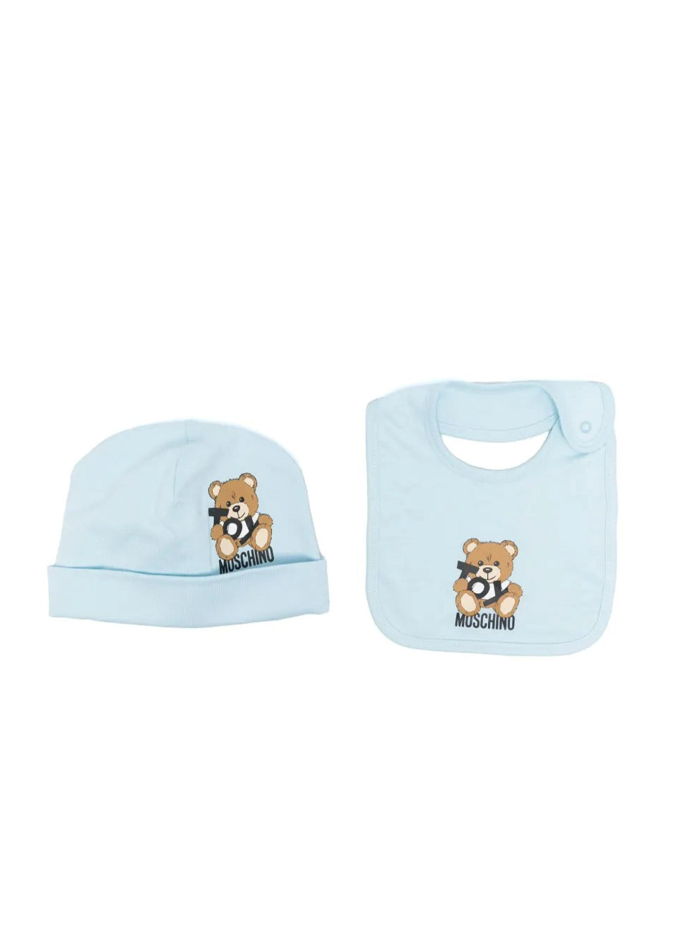 Moschino Kids Baby Hat with Bib Light Blue with Toy