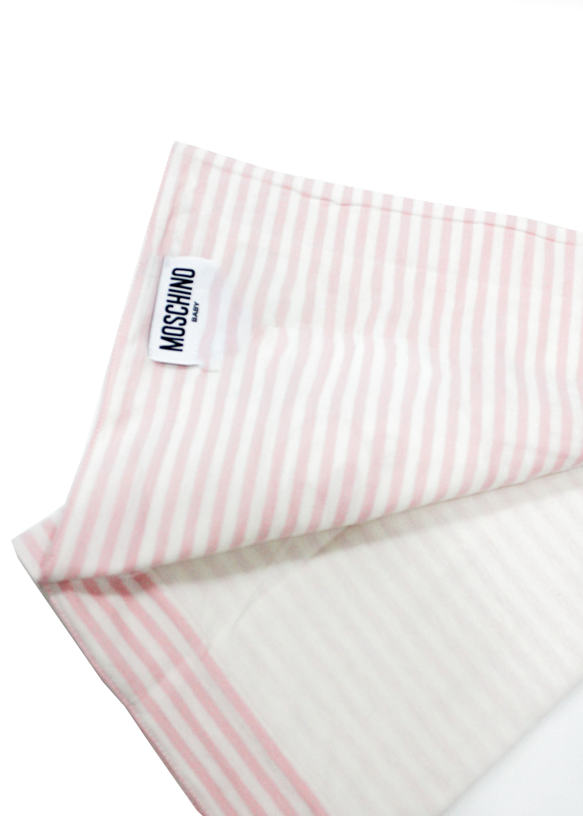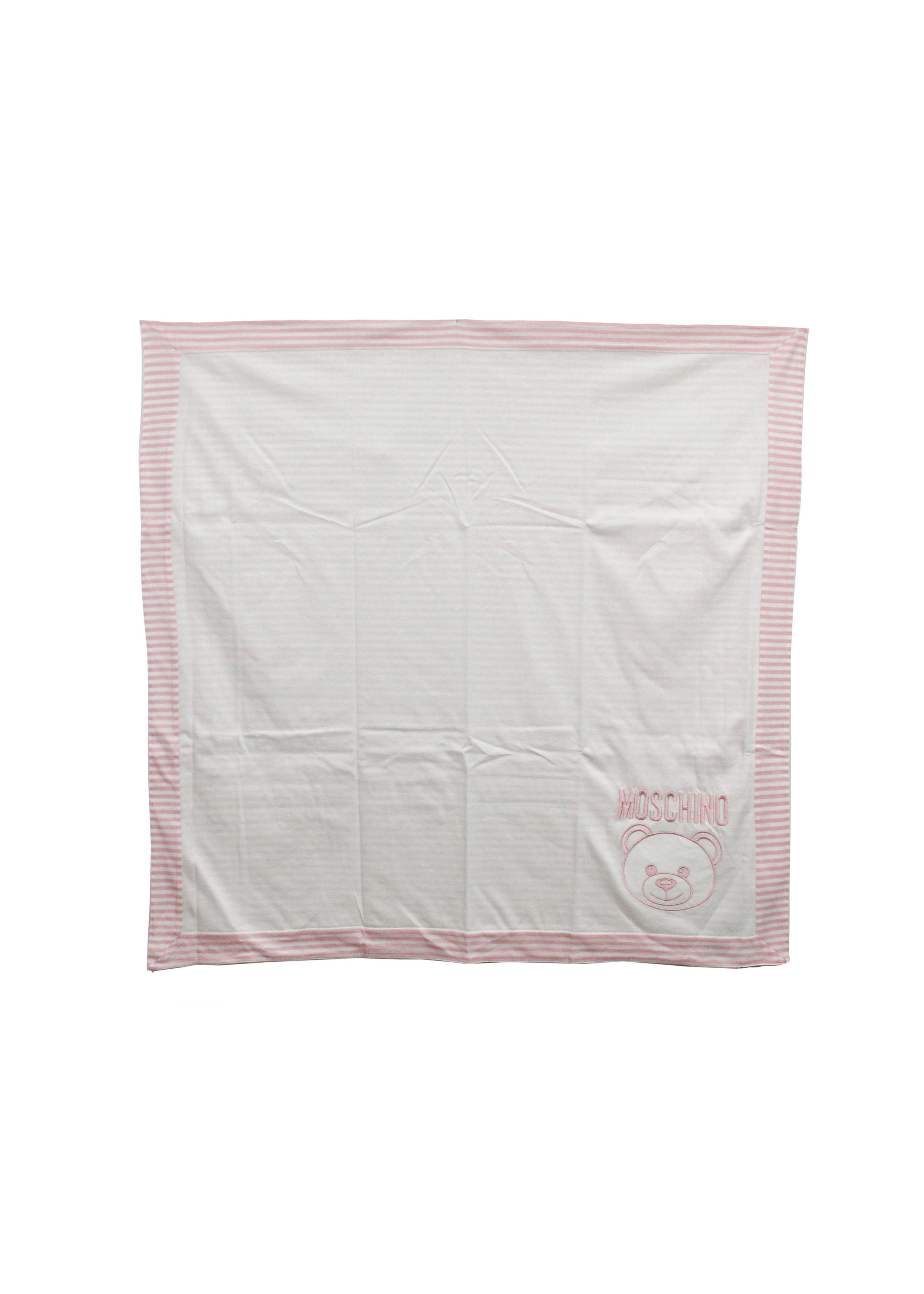 Moschino Kids Pink Striped Blanket with Logo for Baby Girls