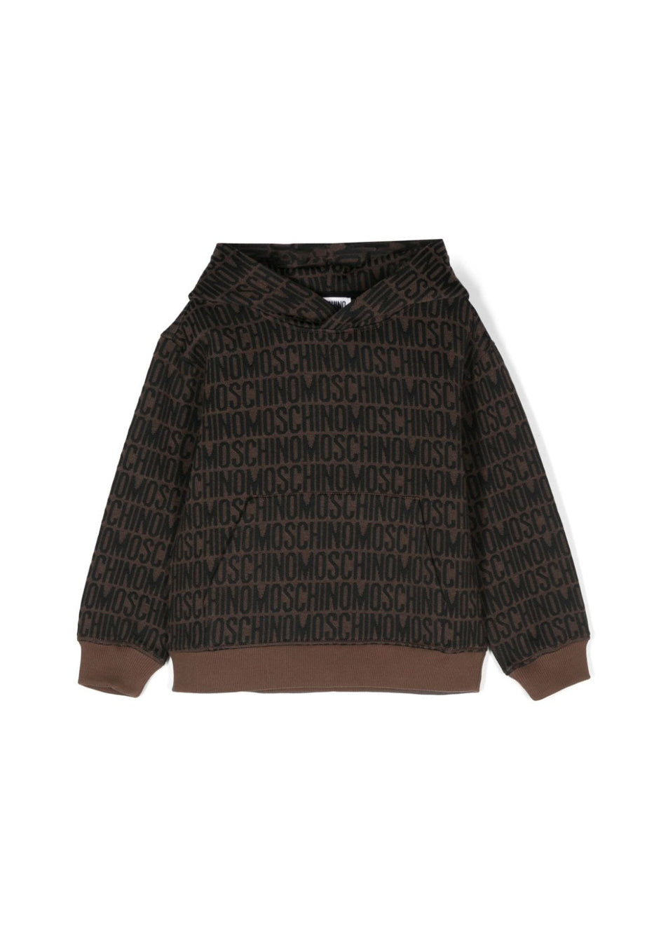The brown Moschino Kids monogram logo sweatshirt, available at Florence Kids, is an essential piece for children who want a unique and distinctive style. Crafted from a soft jersey fabric, this sweatshirt features an all-over print with an embossed logo, which adds a modern and trendy touch. The hooded design offers a casual and functional look, while the front kangaroo pocket is ideal for keeping hands warm or storing small items. The long sleeves with dropped shoulders and ribbed hems and cuffs ensure a comfortable and snug fit. Perfect for adding a touch of elegance to children's everyday wardrobe.