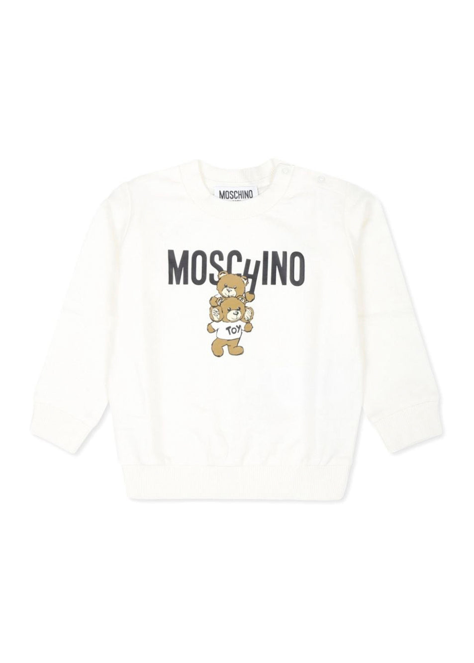 Moschino Kids Cream Sweatshirt with Teddy Bear Logo Print for Newborns
