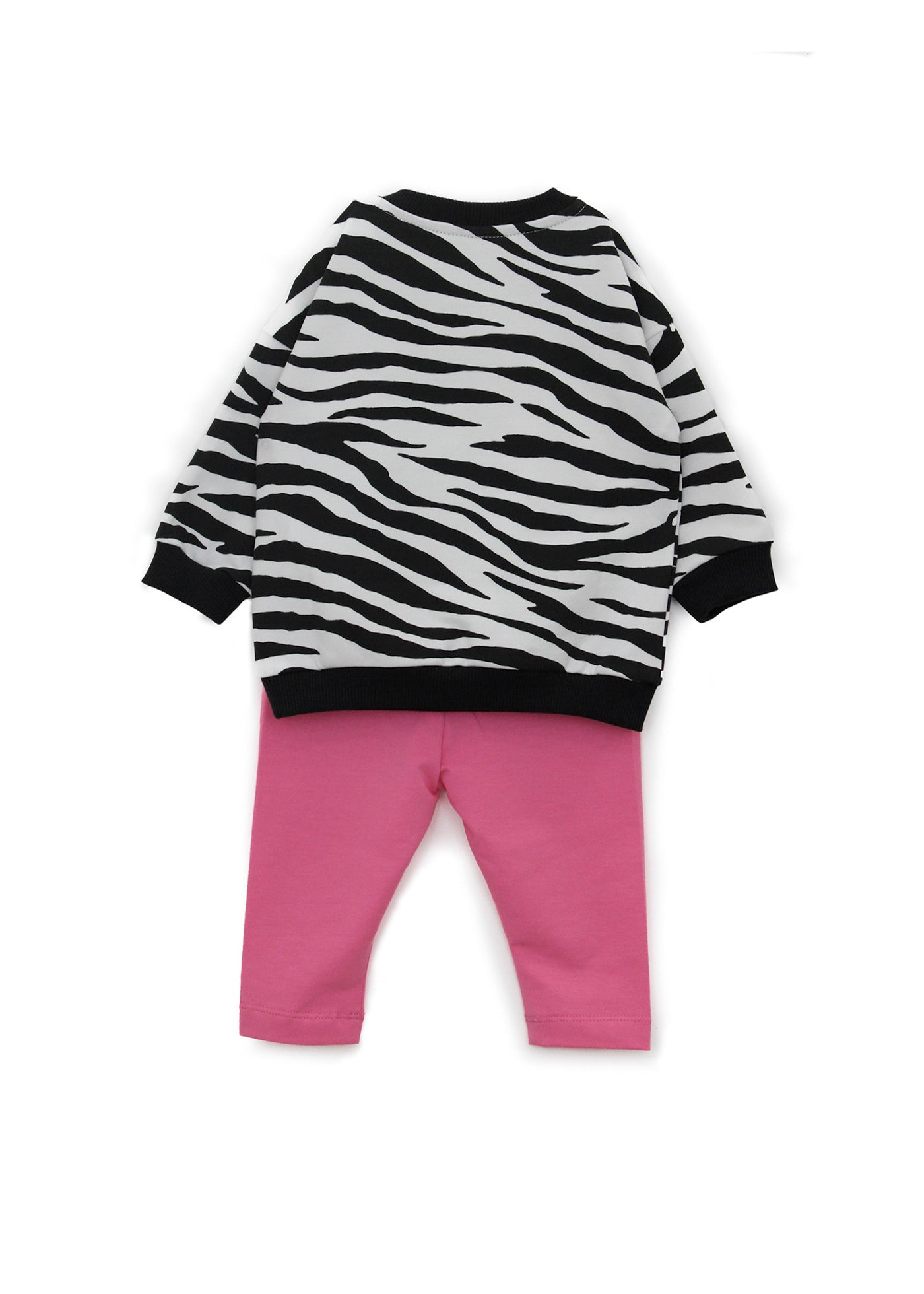Moschino Kids Felpa Zebrata con Leggings Fucsia per Neonate (retro)