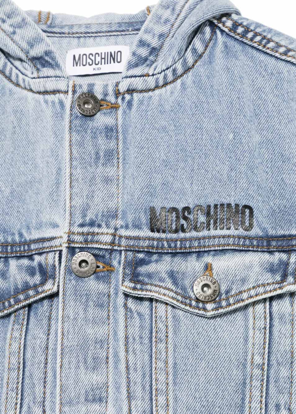 Give your child a casual and trendy style with the Printed Denim Jacket by Moschino Kids. Made from durable denim, this jacket is perfect for completing any outfit with a touch of originality. The design features a front button fastening, a comfortable hood and two front pockets with flap, which add functionality and practicality. The buttoned cuffs ensure a perfect fit, easily adapting to the child's needs for movement. Ideal for the mid-season, it is a versatile and trendy garment for a casual and dynamic look.