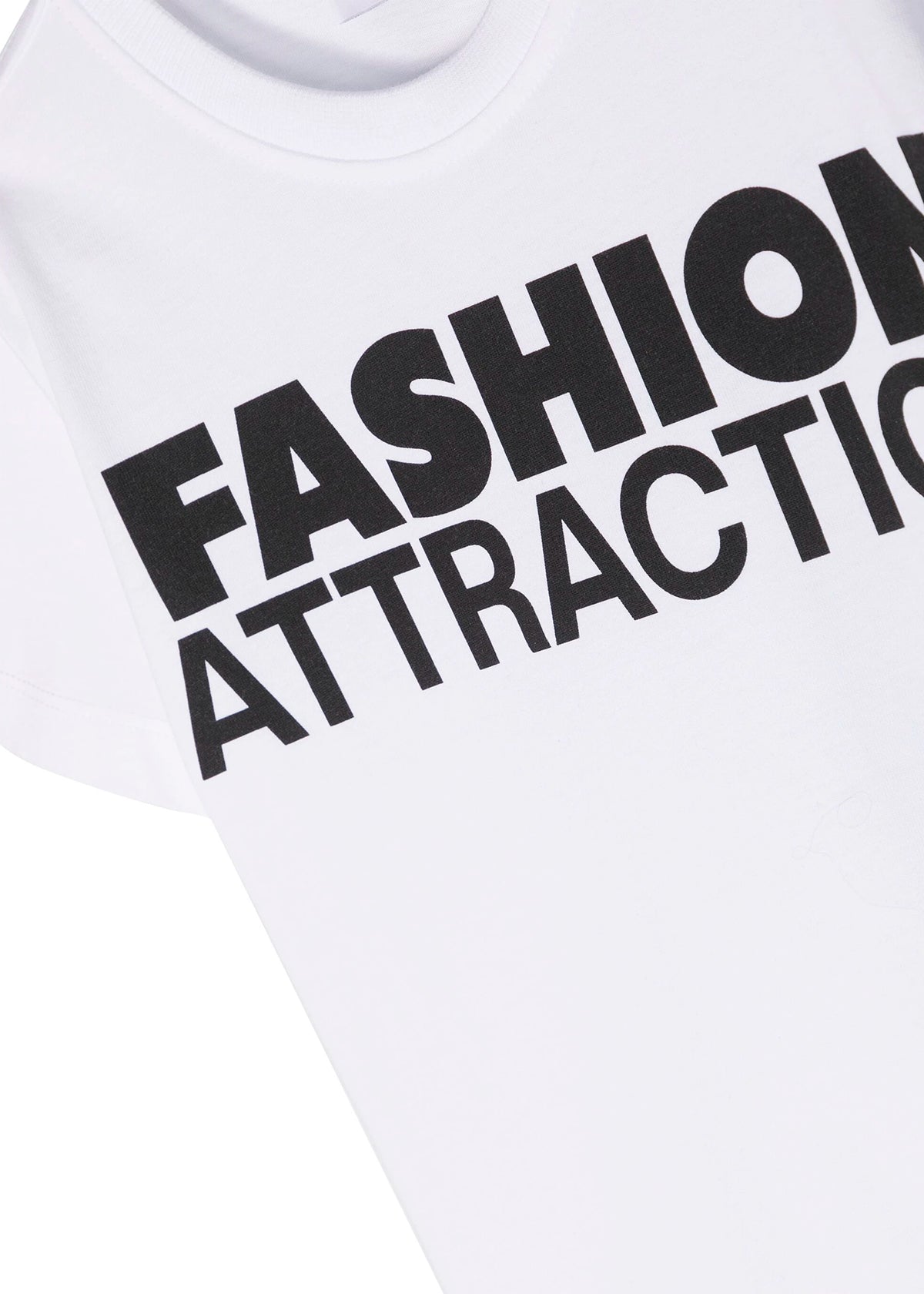 The Moschino Kids T-shirt features a black and white design in cotton jersey, with a slogan print on the front that adds a touch of boldness. With a crew neck, short sleeves and a straight hem, it combines comfort and style for little ones.