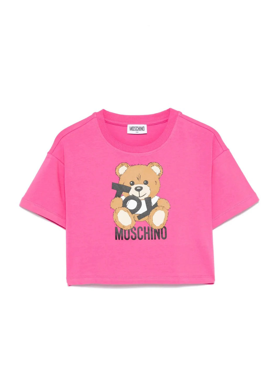 Moschino Kids Fuchsia Crop T-shirt with Toy Print for Girls - Florence Kids