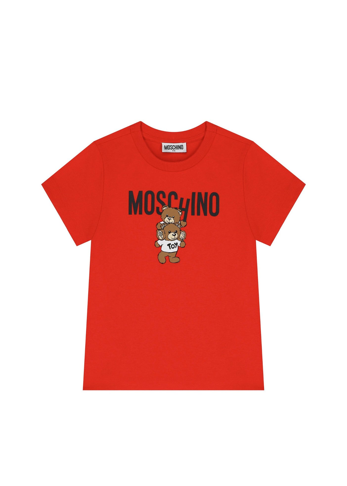 Moschino Kids T-shirt Rossa con Stampa Teddy (retro)