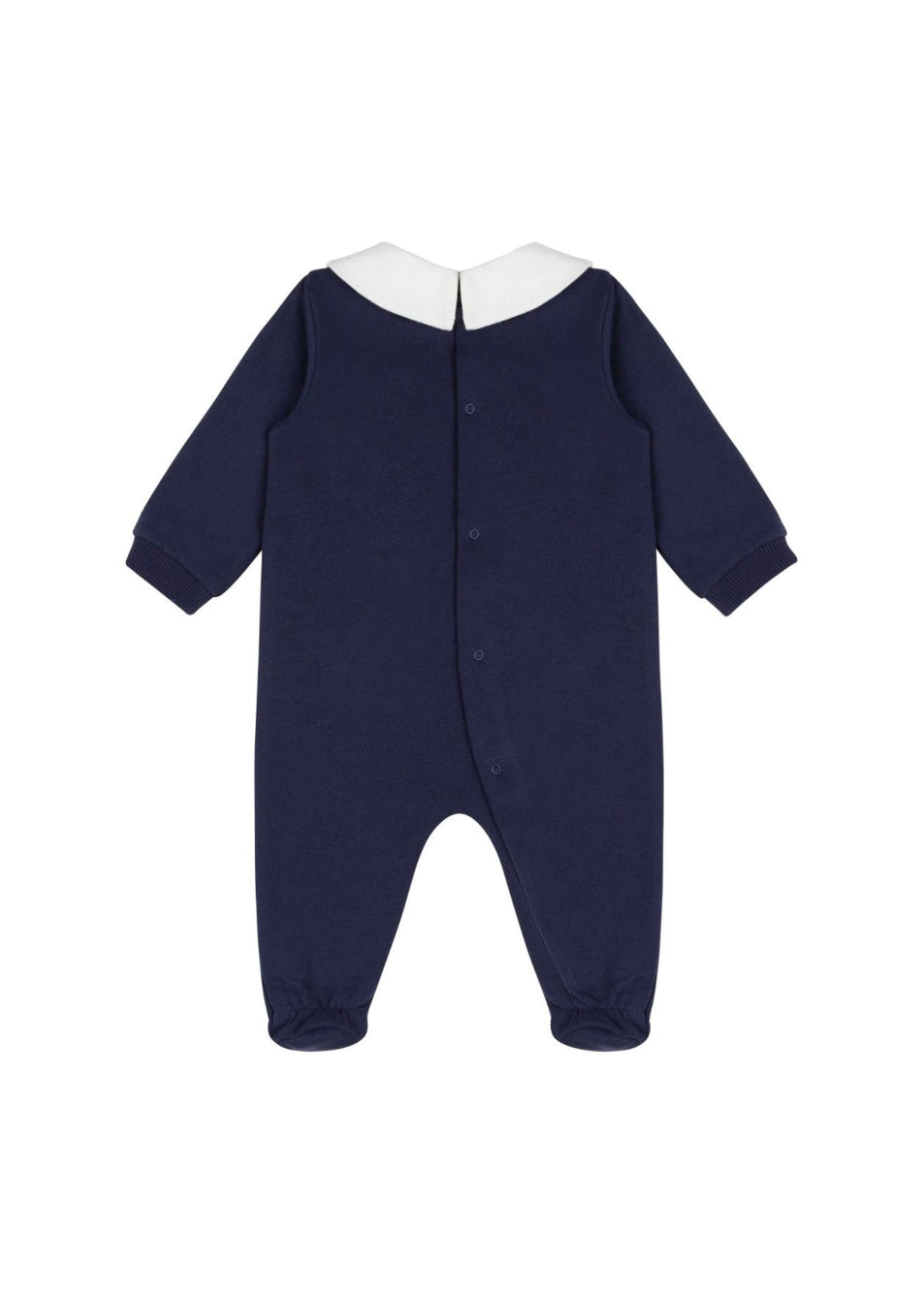 The blue onesie by Moschino Kids with the Teddy Bear logo, available on Florence Kids, represents a stylish and comfortable choice for newborns. In soft cotton, it offers a gentle caress on the skin, while the blue shade transmits serenity and style. The Teddy Bear motif and the logo print on the front celebrate the iconic vivacity of Moschino. The Peter Pan collar and the long sleeves with ribbed cuffs are details that combine elegance and functionality. Easy to wear thanks to the press studs, this onesie is ideal to combine with the Moschino Kids coordinates such as hat, blanket, bib and mother bag for a complete and charming look.