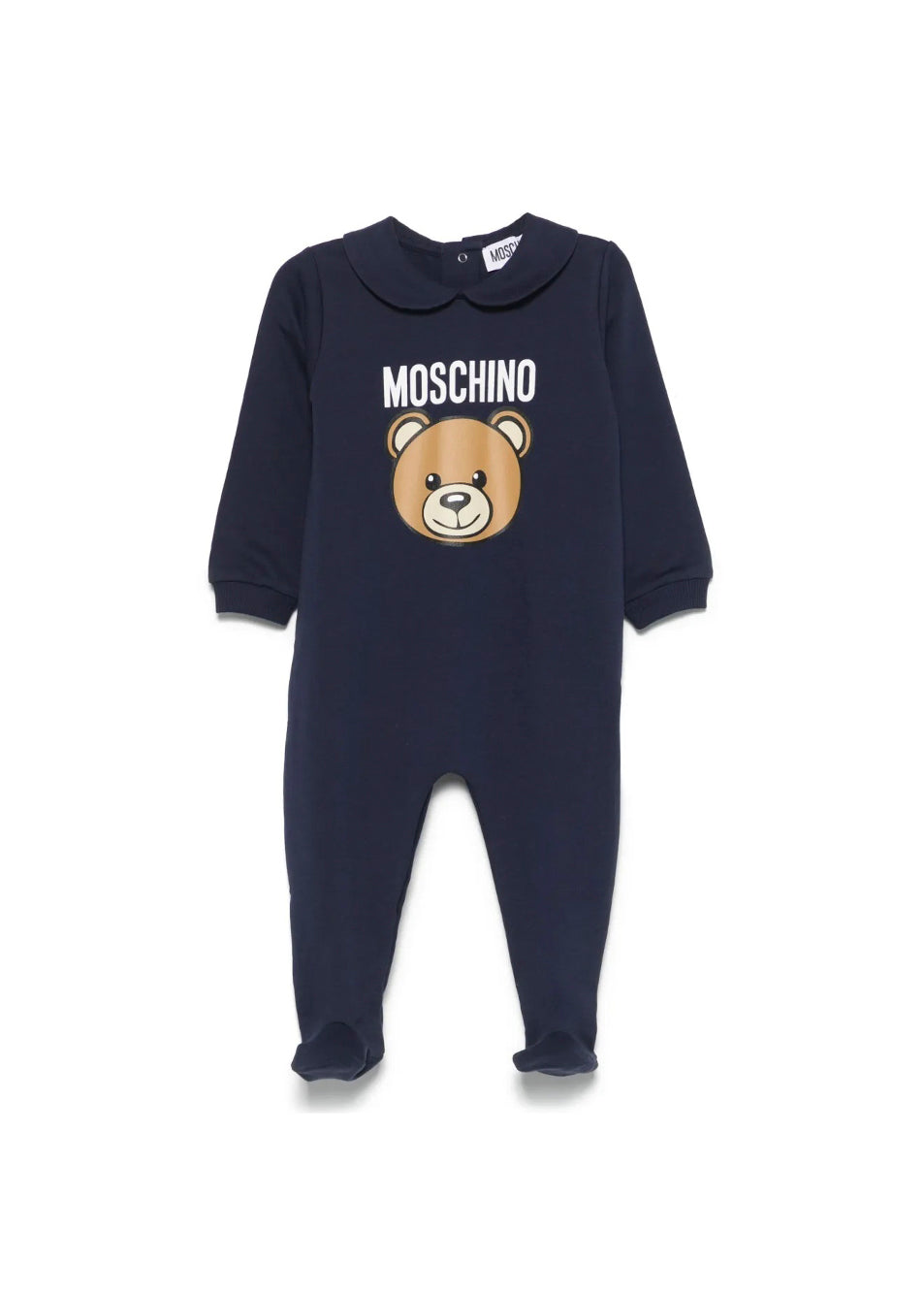 Moschino Kids Navy Blue Teddy Bear Logo Baby Romper