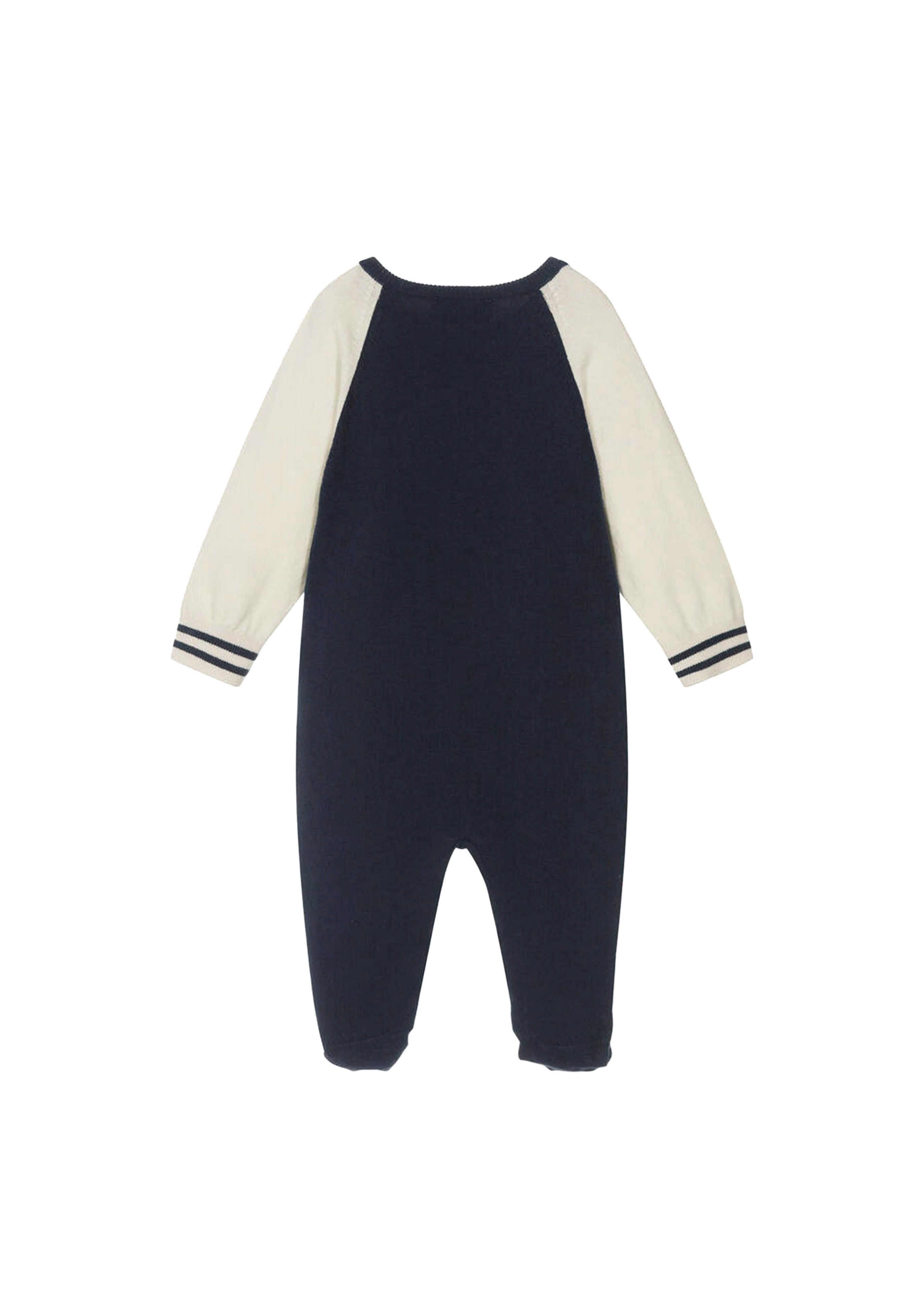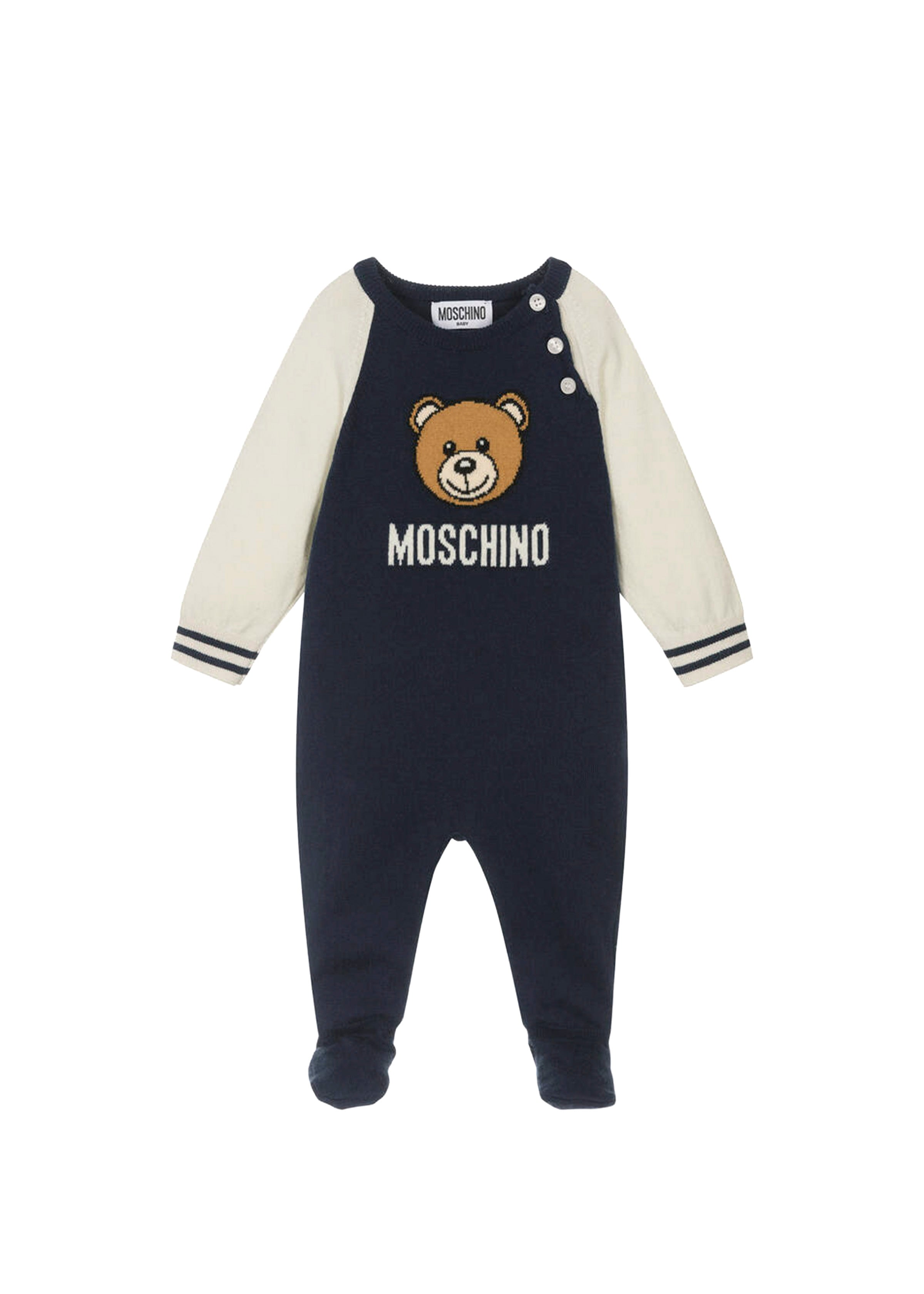 Moschino Kids Navy Blue Wool Teddy Bear Romper for Newborns