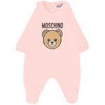 Moschino Kids Tutina con Bavetta e Cappellino Rosa con Logo per Neonate