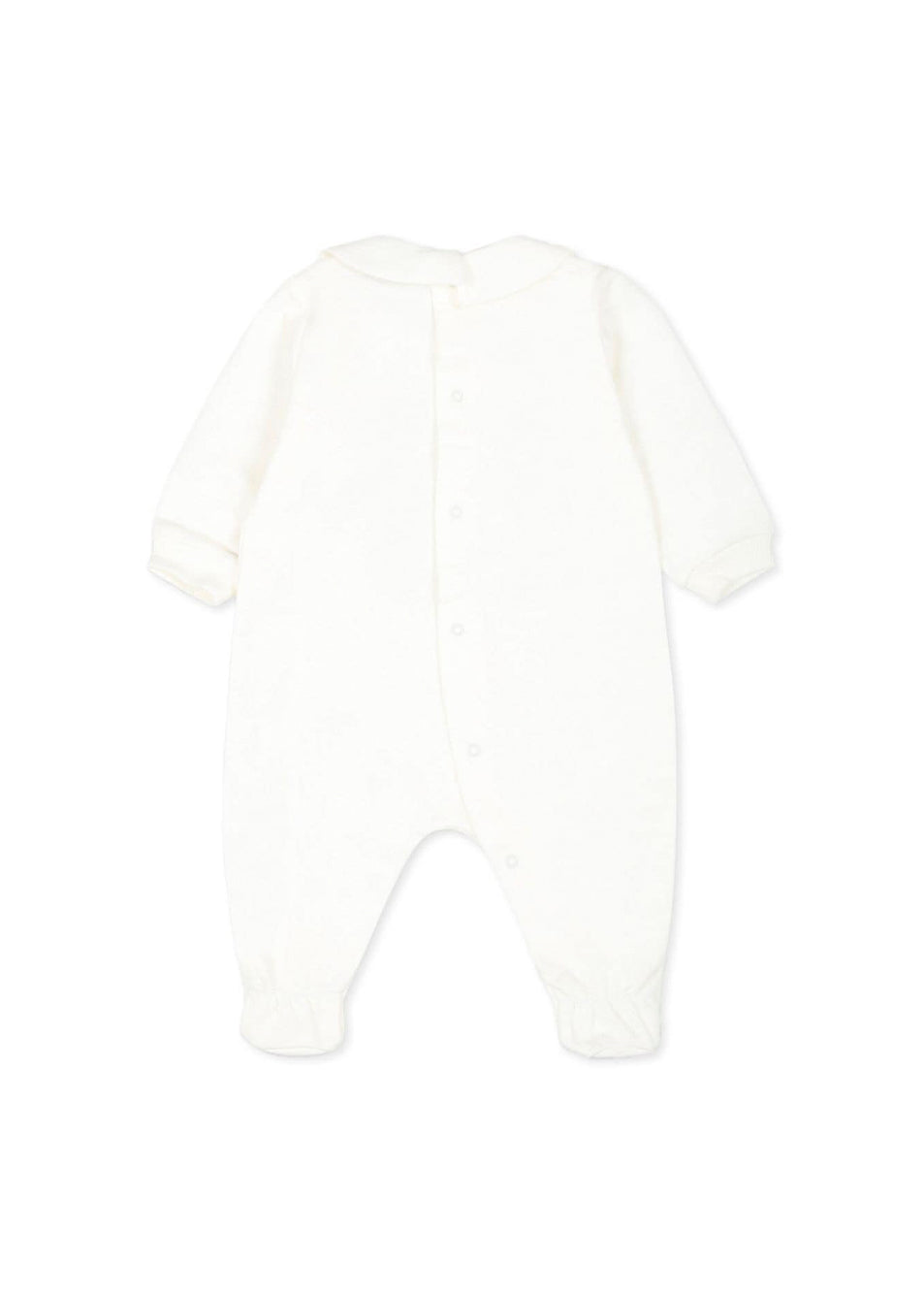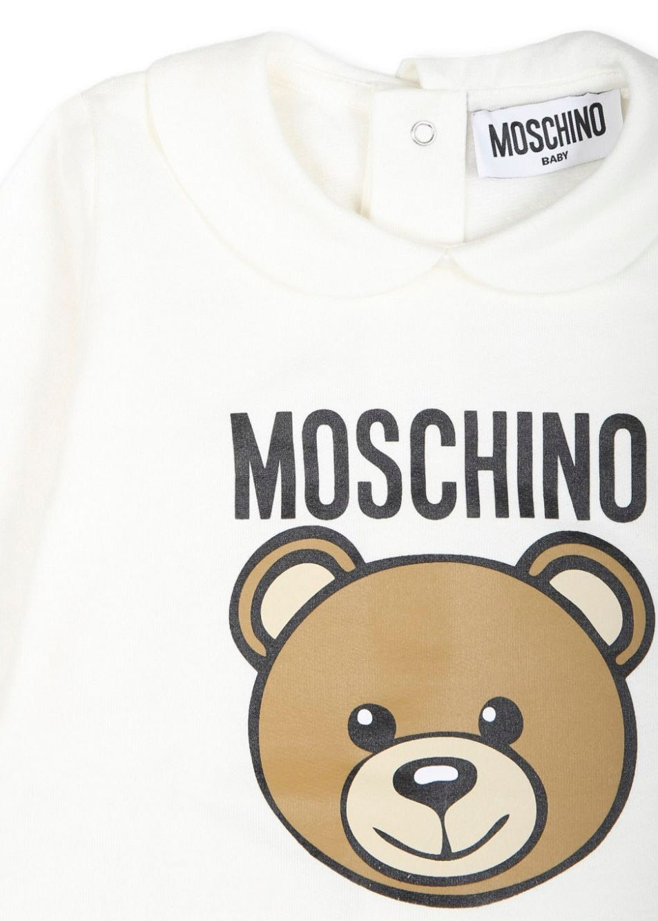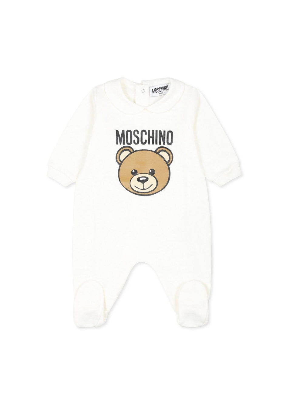 The cream onesie by Moschino Kids with the Teddy Bear logo, available on Florence Kids, represents a stylish and comfortable choice for newborns. In soft cotton, it offers a gentle caress on the skin, while the pink shade transmits serenity and style. The Teddy Bear motif and the logo print on the front celebrate the iconic vivacity of Moschino. The Peter Pan collar and the long sleeves with ribbed cuffs are details that combine elegance and functionality. Easy to wear thanks to the press studs, this onesie is ideal to combine with the Moschino Kids coordinates for a complete and charming look.