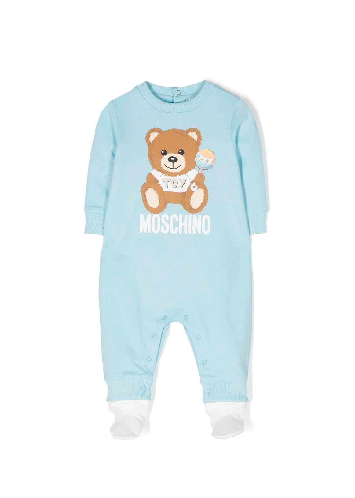 Teddy Bear Onesie Light blue, multicoloured, cotton, signature teddy bear motif, logo print on the front, round neck, button fastening at the back, long sleeves, button fastening, straight fit, sock design and ribbed finish.