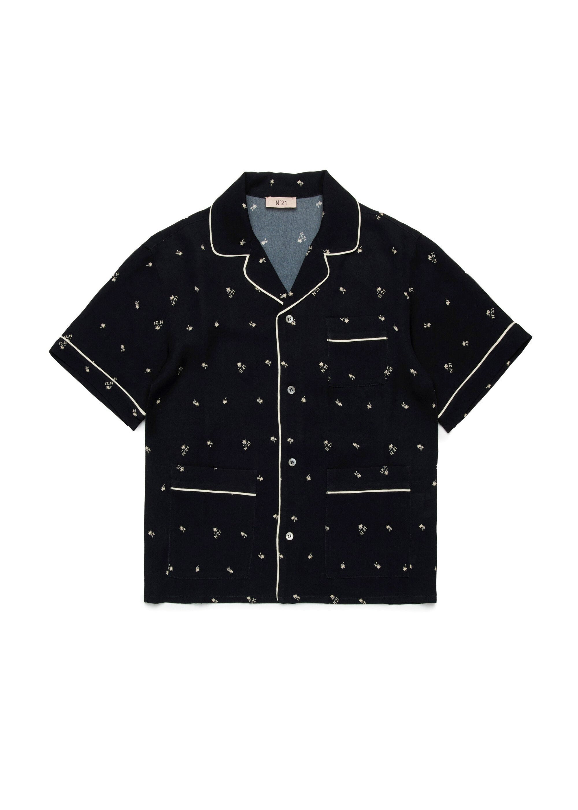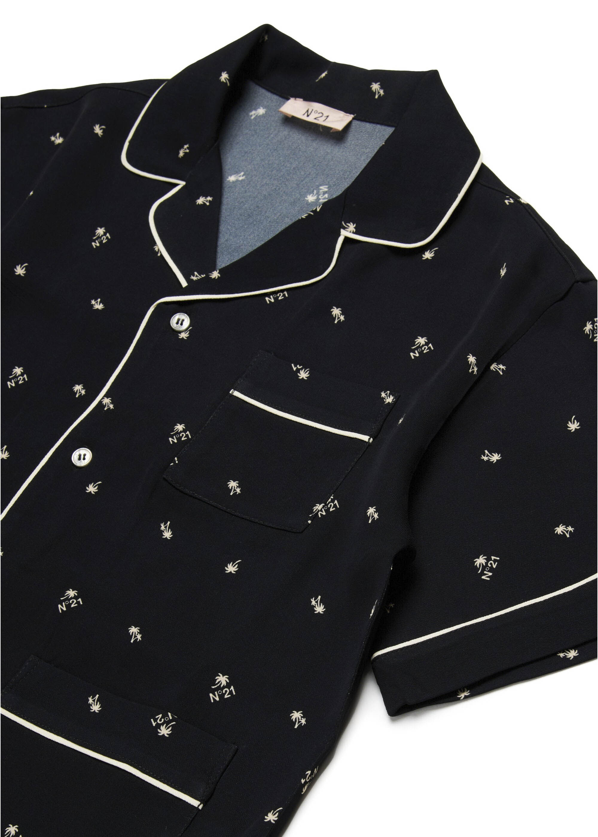 N°21 Kids Camicia Nera All over Palms per Bambine