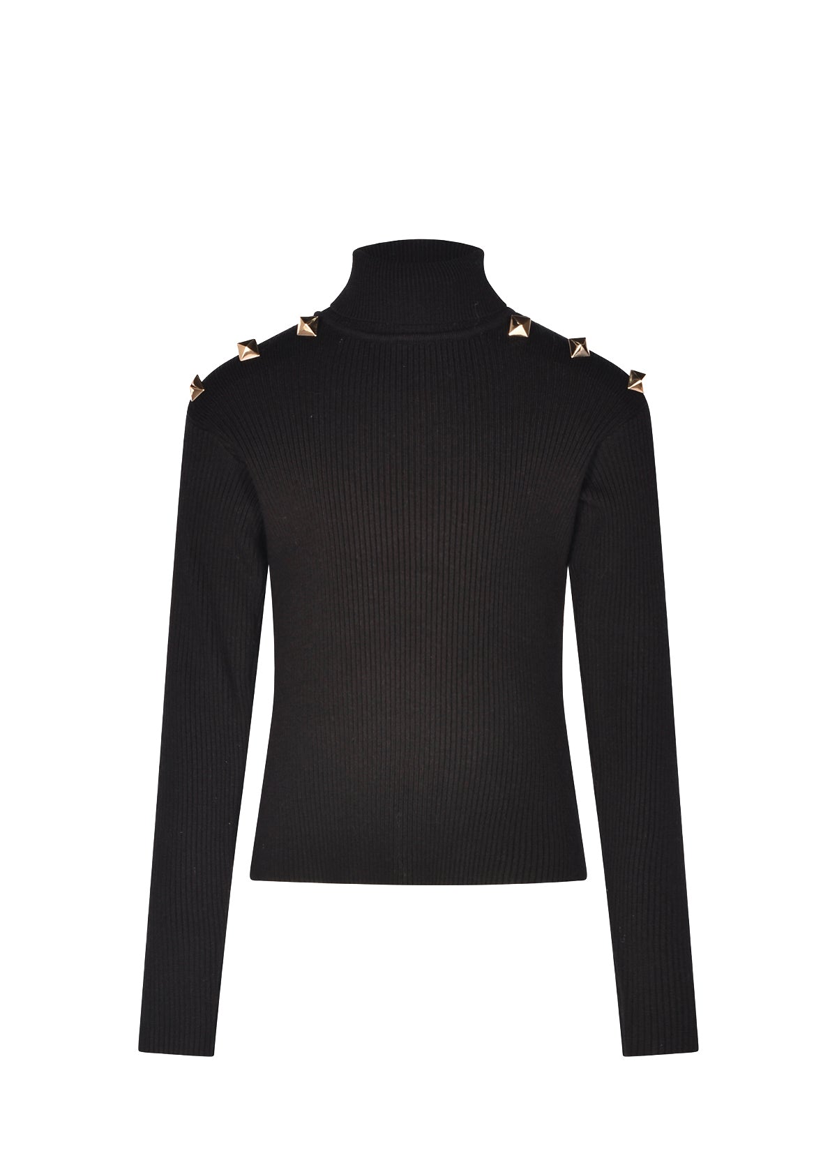Odi et Amo Black Studded Knit Turtleneck Sweater for Girls