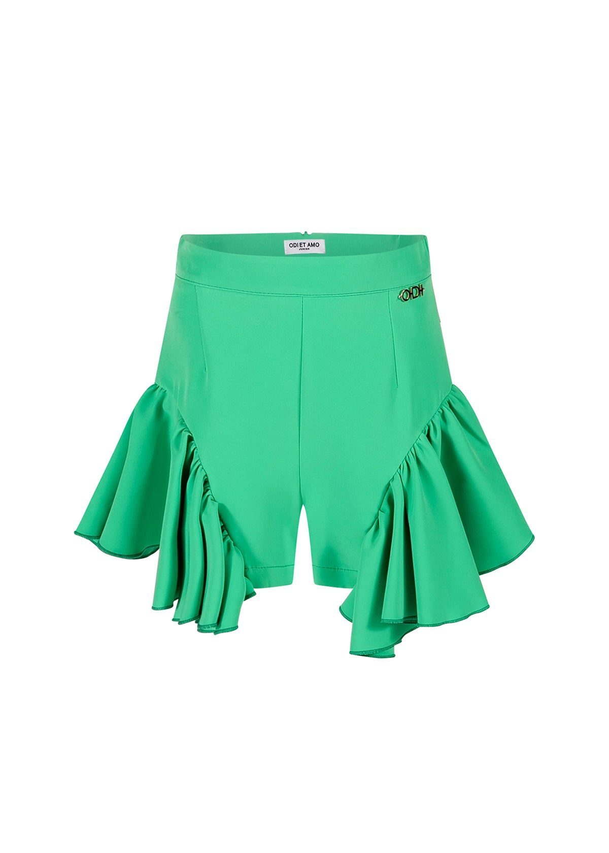 Fall for the green shorts from Odi et Amo, available at Florence Kids, a chic and adorable choice for little girls. These shorts feature an eye-catching ruffle design that adds a touch of femininity and movement. The high waist and zip fastening at the back offer a secure and comfortable fit, while the logo applique highlights Odi et Amo's attention to quality details. Perfect for summer days or special events, these shorts are versatile and fashionable. Perfect to pair with the matching jacket!