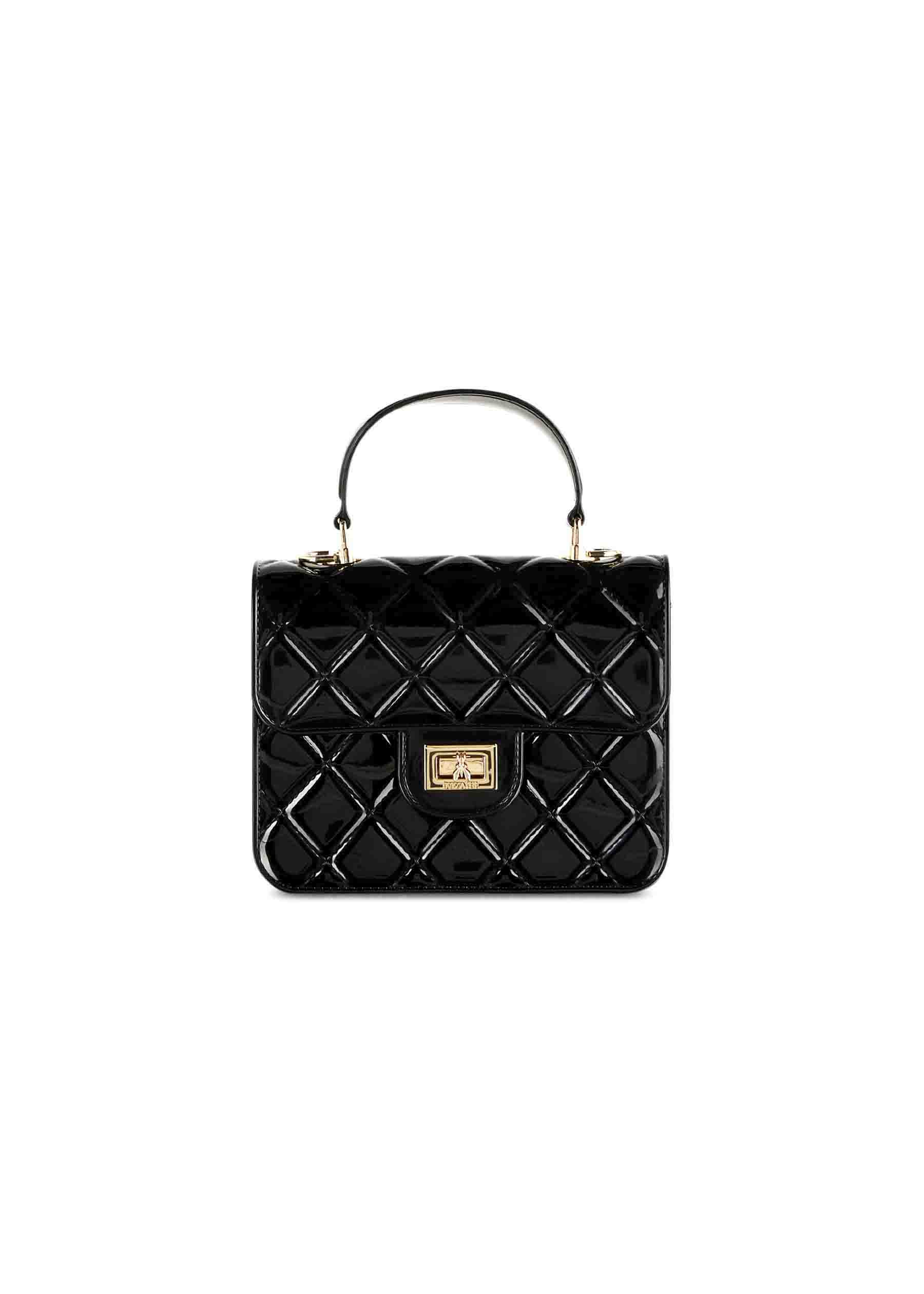 Patrizia Pepe quilted black bag for girls, made of fine PVC with a refined and modern texture. This compact but roomy accessory combines elegance and practicality, with essential lines that follow the latest trends. The twist lock, enriched by the iconic logo of the Patrizia Pepe brand, adds a distinctive and classy touch. The detachable metal shoulder strap offers versatility, allowing the bag to be worn both on the shoulder and by hand, easily adapting to every occasion and look. With its compact size, it is perfect for storing essential items in style, without sacrificing lightness and comfort.