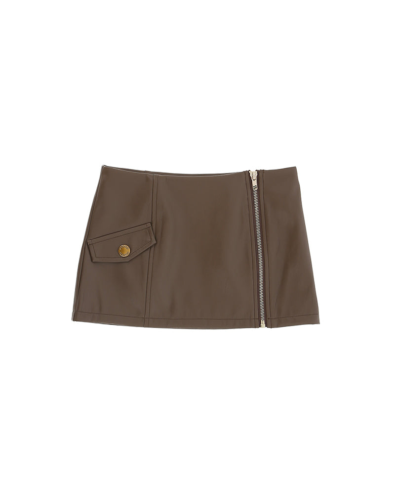 Gonna Pinko Kids realizzata in eco-pelle morbida e resistente, pensata per unire stile contemporaneo e praticità. Il design essenziale è valorizzato dalla zip frontale a vista, che aggiunge un tocco grintoso e moderno, mentre la tasca decorativa con bottone logato richiama l’estetica iconica del brand.