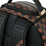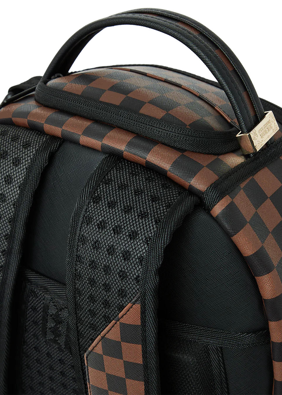 Front zippered pocket • Side pockets • Hidden zippered pocket • Separate velour sunglasses compartment • Ergonomic mesh back padding • Adjustable straps for custom sizing • Gold zippers with metal hardware • Metal “Sprayground Authentic” badge • Sliding back sleeve connects to carry-on for hands-free travel