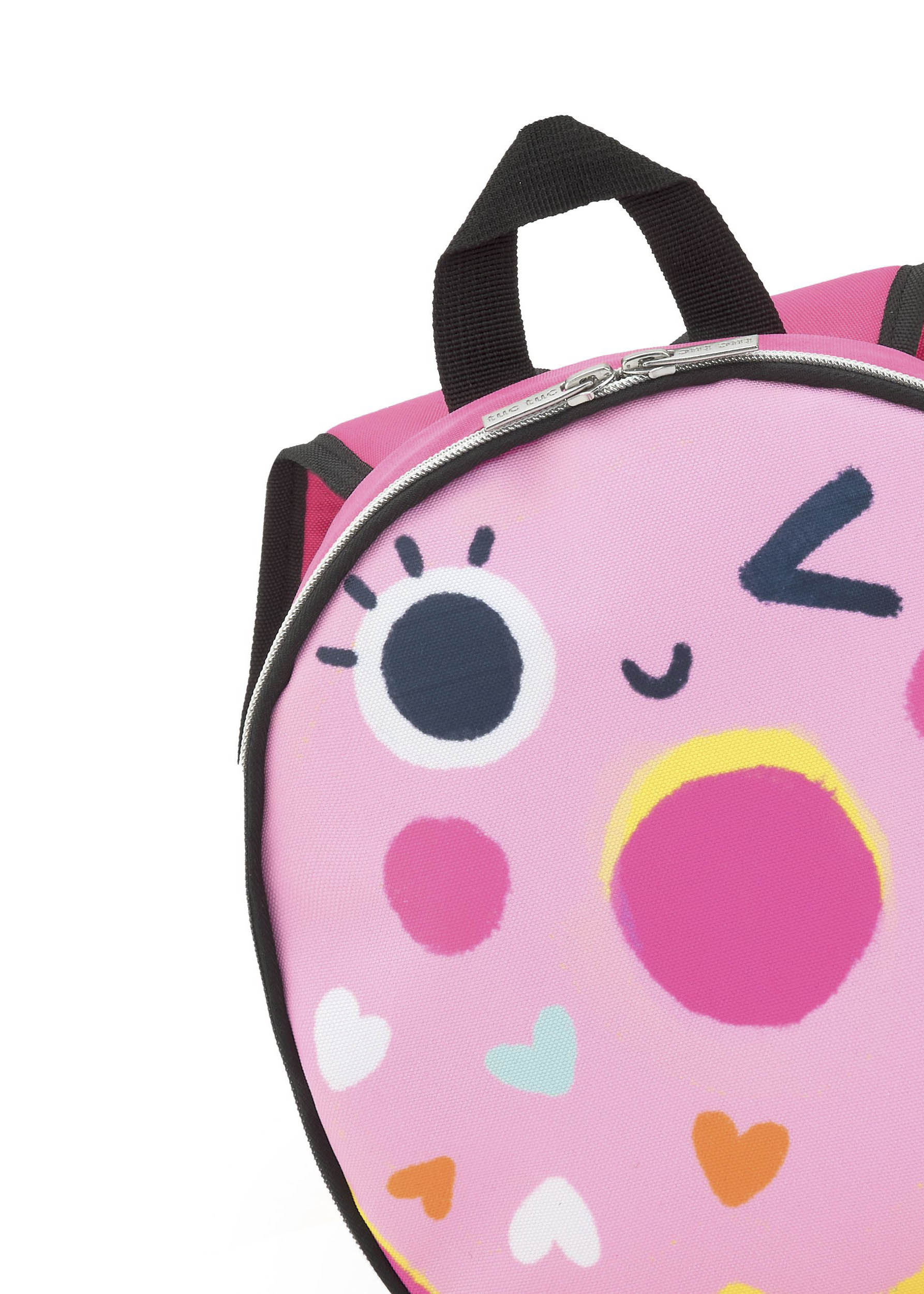 Tuc Tuc backpack for girls, made of resistant pink material with an adorable smiling donut design, enriched by colorful heart-shaped details. Perfect for kindergarten, trips or daily outings, it combines functionality and playful style. Equipped with a practical zip closure and adjustable shoulder straps, it guarantees a comfortable and personalized fit. Compact but roomy, it is ideal for holding small objects, snacks and essential accessories. A cheerful and functional accessory, designed to accompany your little one on every adventure.