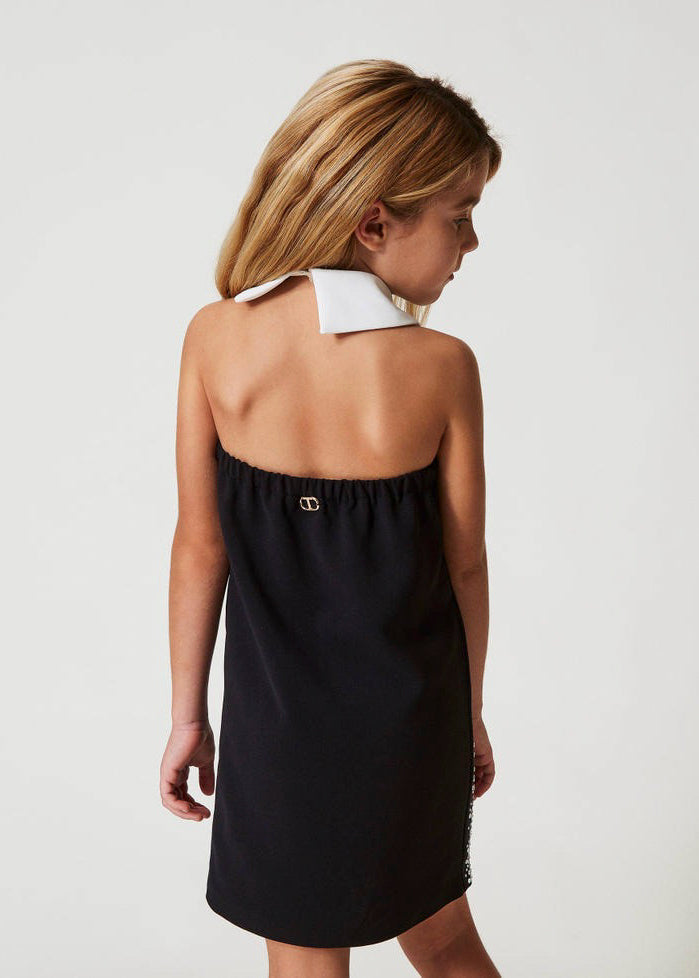 Twinset Kids Abito Nero in Crepe con Strass per Bambine