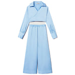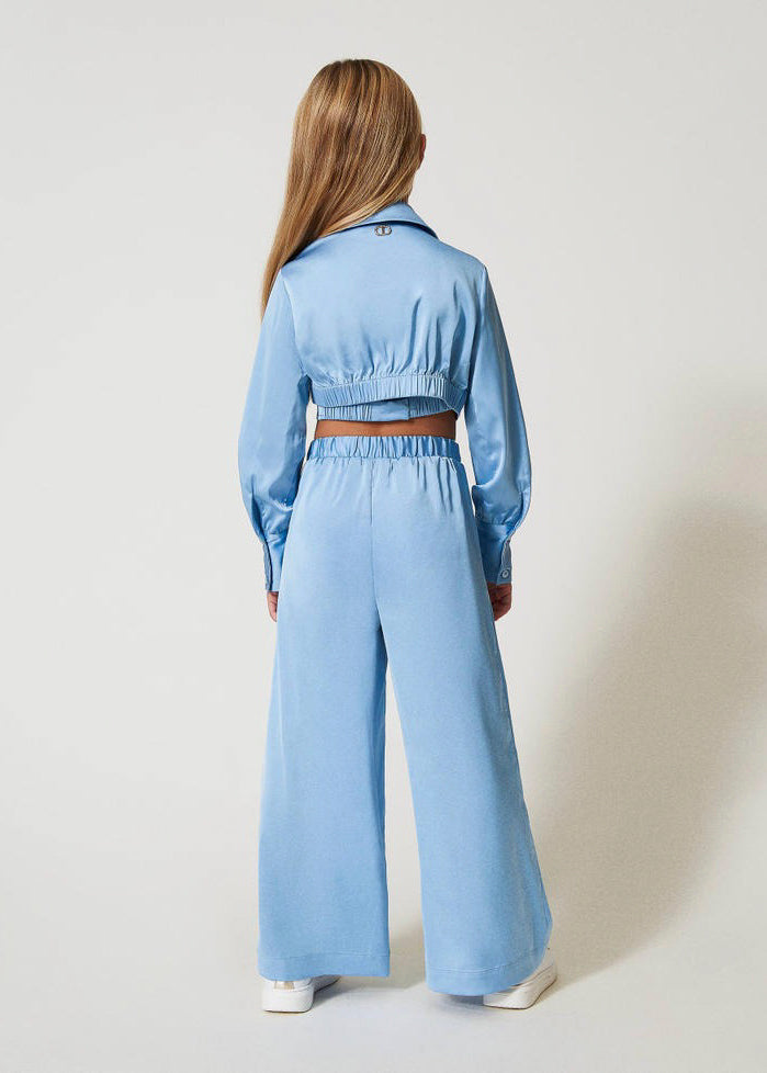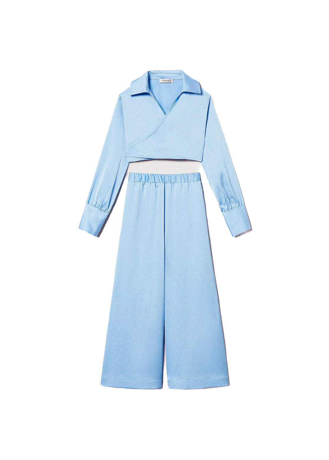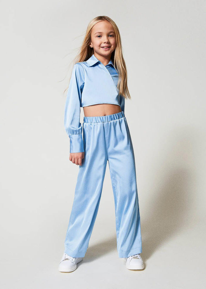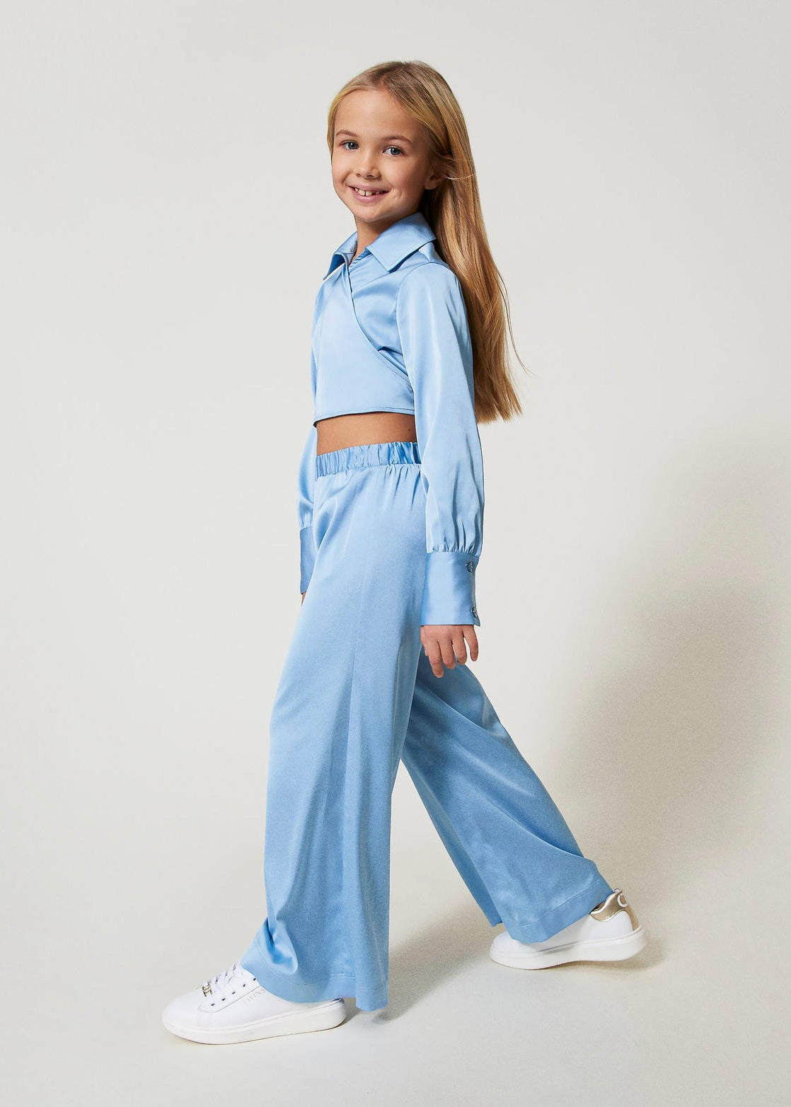 Twinset Kids Camicia con Pantaloni Azzurri in Raso per Bambine