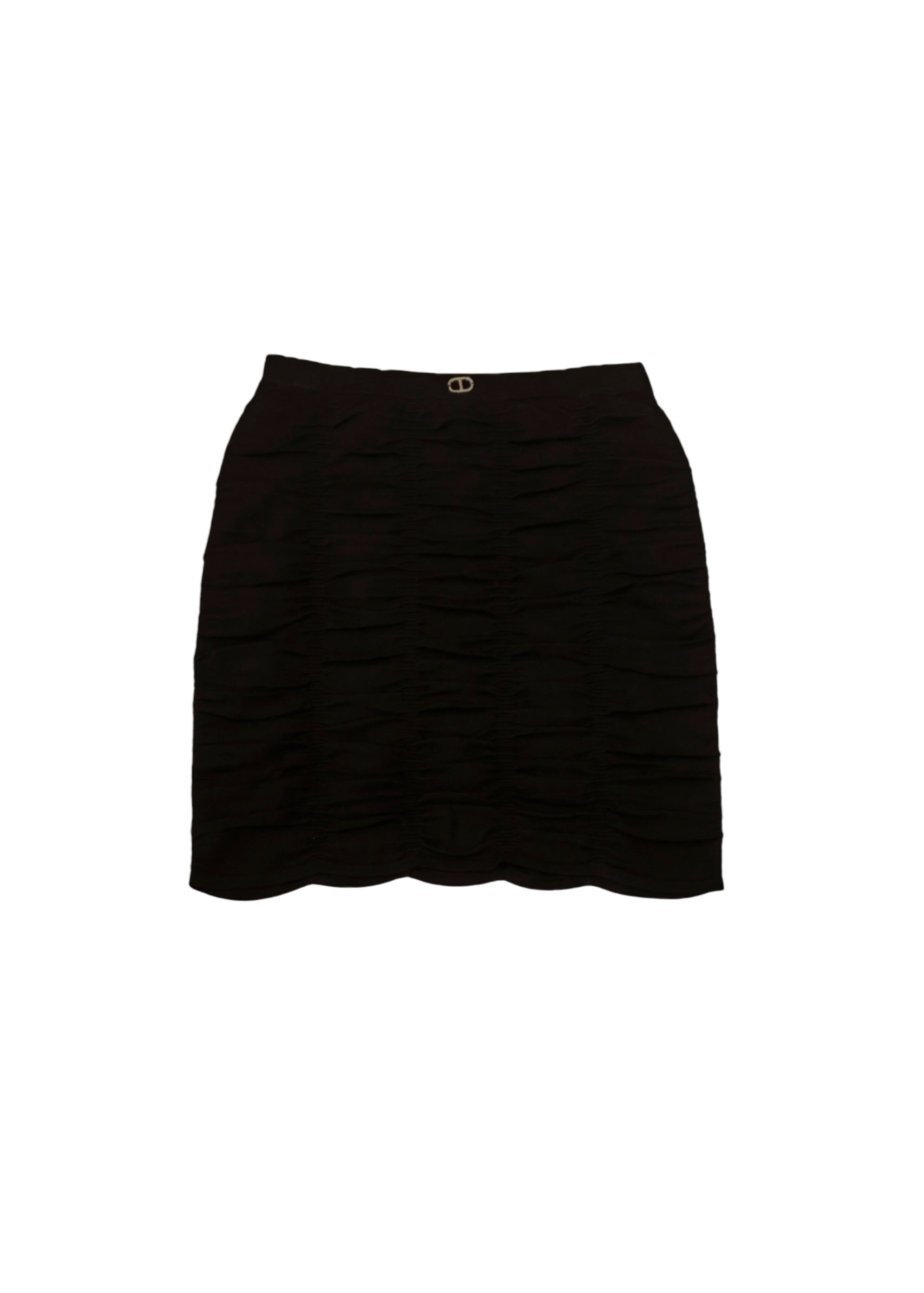 Dona un tocco di colore e stile al guardaroba della tua bambina con la minigonna nera Twinset Kids. Realizzata in maglia goffrata di misto viscosa, questa gonna con linea fitted esalta la silhouette in modo comodo e raffinato. L’elastico in vita garantisce una vestibilità perfetta e confortevole, mentre la placchetta logo Oval T aggiunge un dettaglio iconico e distintivo. Ideale da abbinare a t-shirt o top per un look casual chic perfetto per ogni occasione, dalle uscite con gli amici agli eventi più speciali.