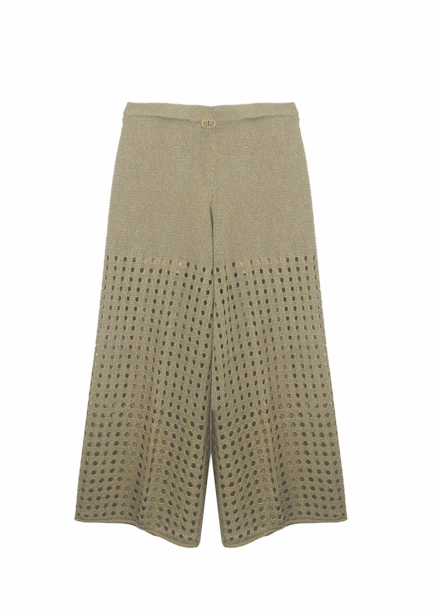 Twinset Kids Pantaloni Canapa Forati con Logo per Bambine