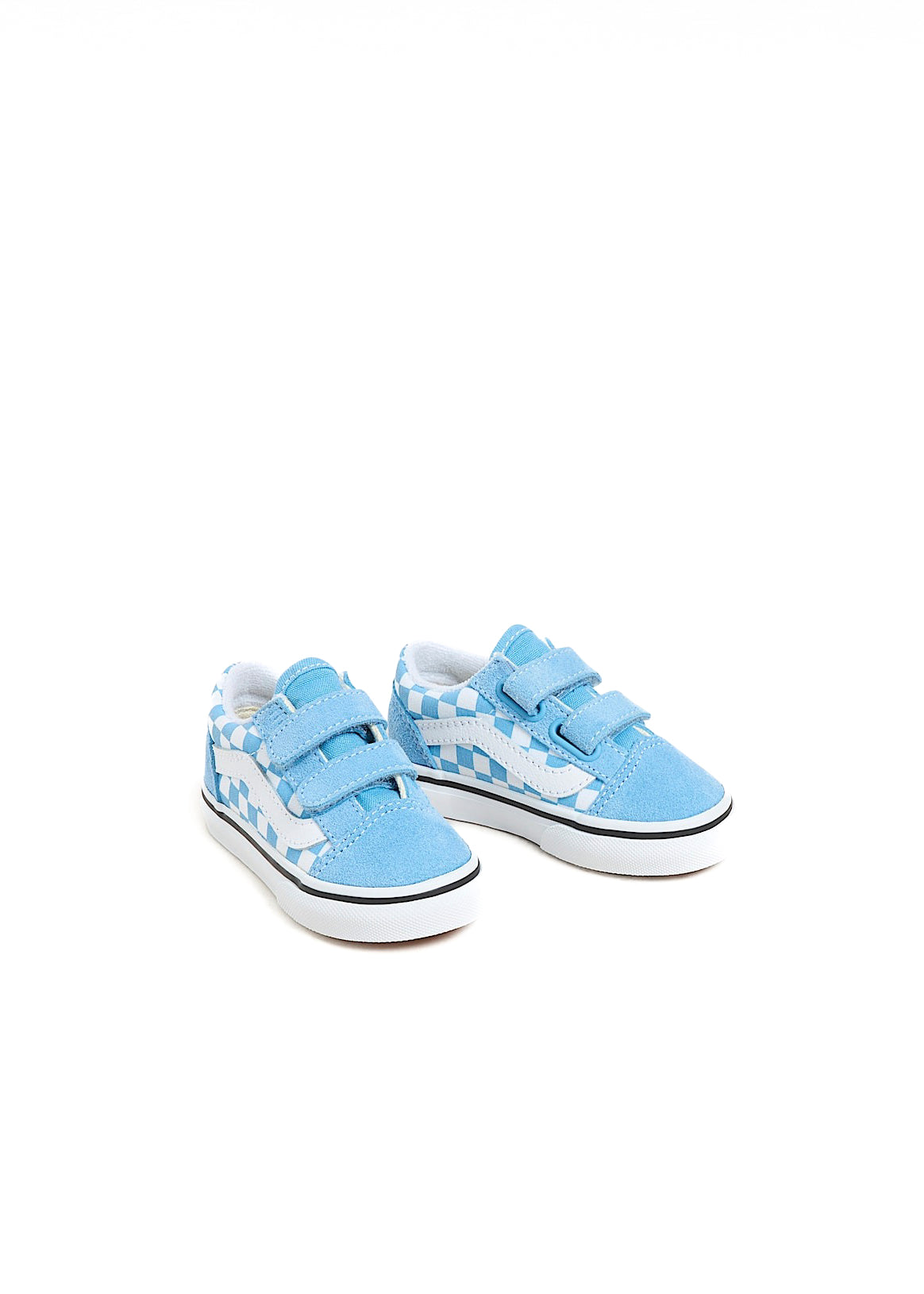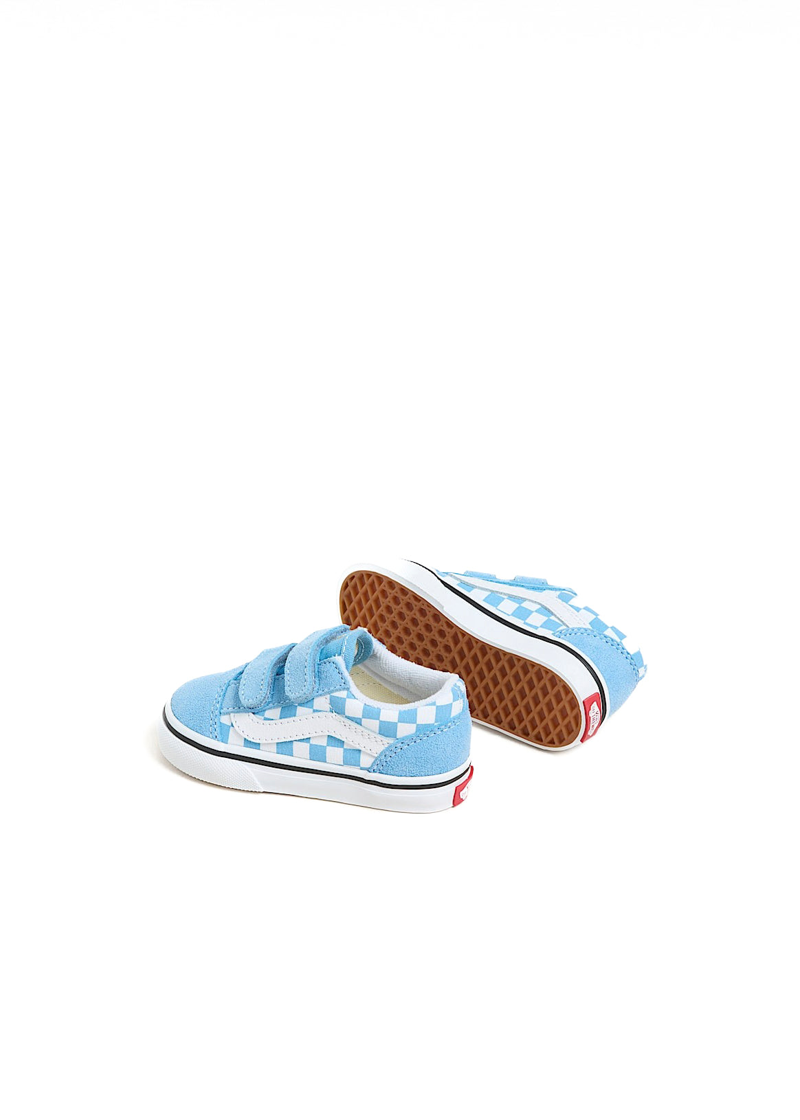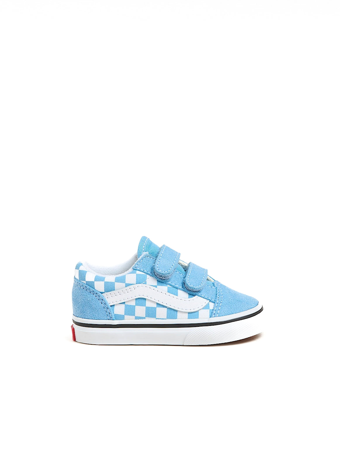 The Vans Kids Old Skool in light blue for infants is a perfect version for little ones of the legendary Sidestripe model. Featuring a double hook-and-loop closure, these shoes offer an easy and secure fit, making them the perfect first step. The sturdy suede and canvas uppers are enriched with the classic Vans® checkerboard print, adding a touch of unique style. Reinforced toecaps and padded collars offer comfort and support, while the rubber waffle outsoles provide a firm grip. Perfect for any casual occasion, these shoes combine style, comfort and functionality.