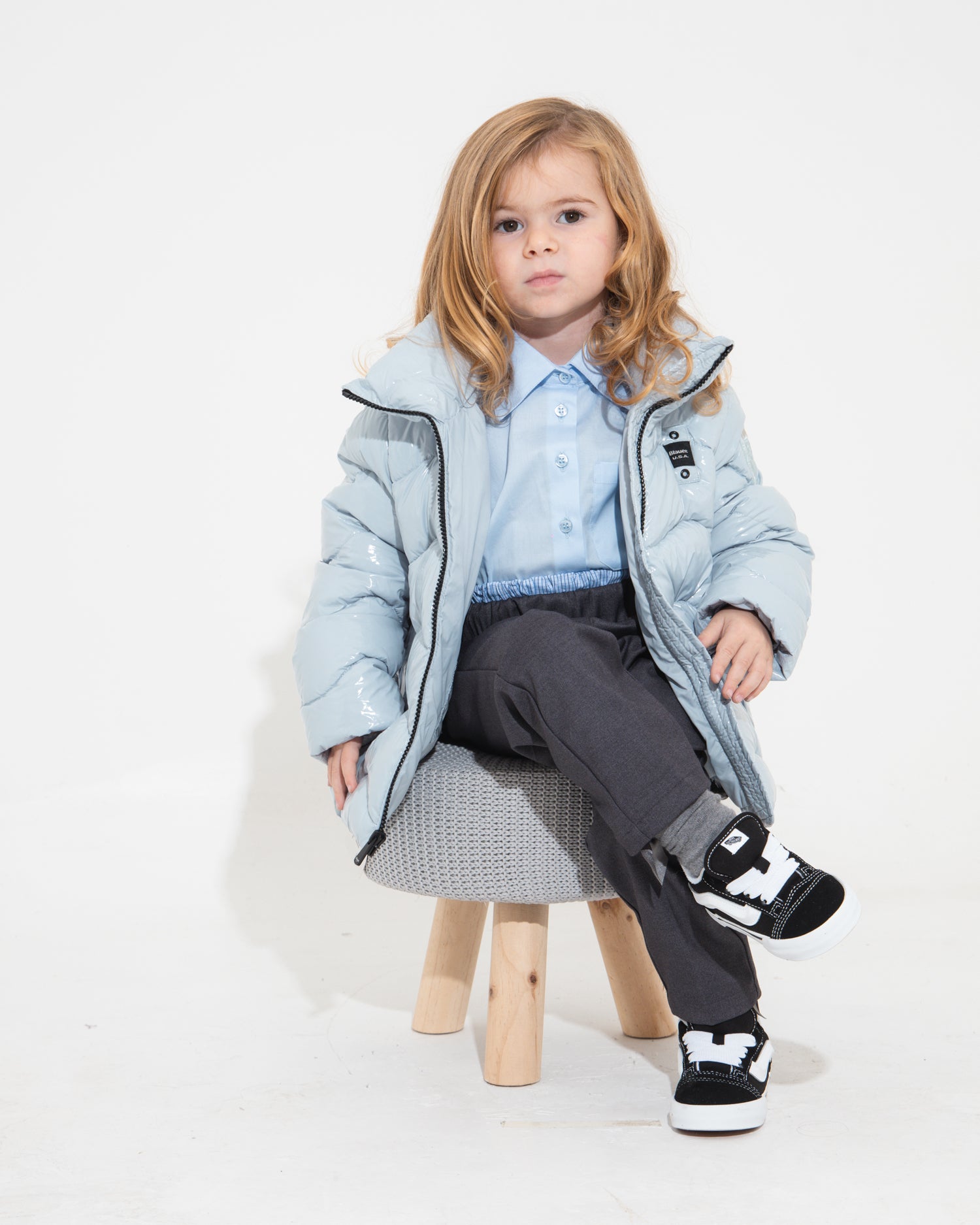 The light blue shirt from Vicolo Kids is a stylish and versatile piece, perfect for any occasion. With a shirt collar and long sleeves, it features a button fastening on the front and buttoned cuffs. The asymmetric hem, short on the front and long on the back, adds a modern touch to the design. The button details on the back complete the look, making this shirt a perfect choice for a chic and comfortable outfit.