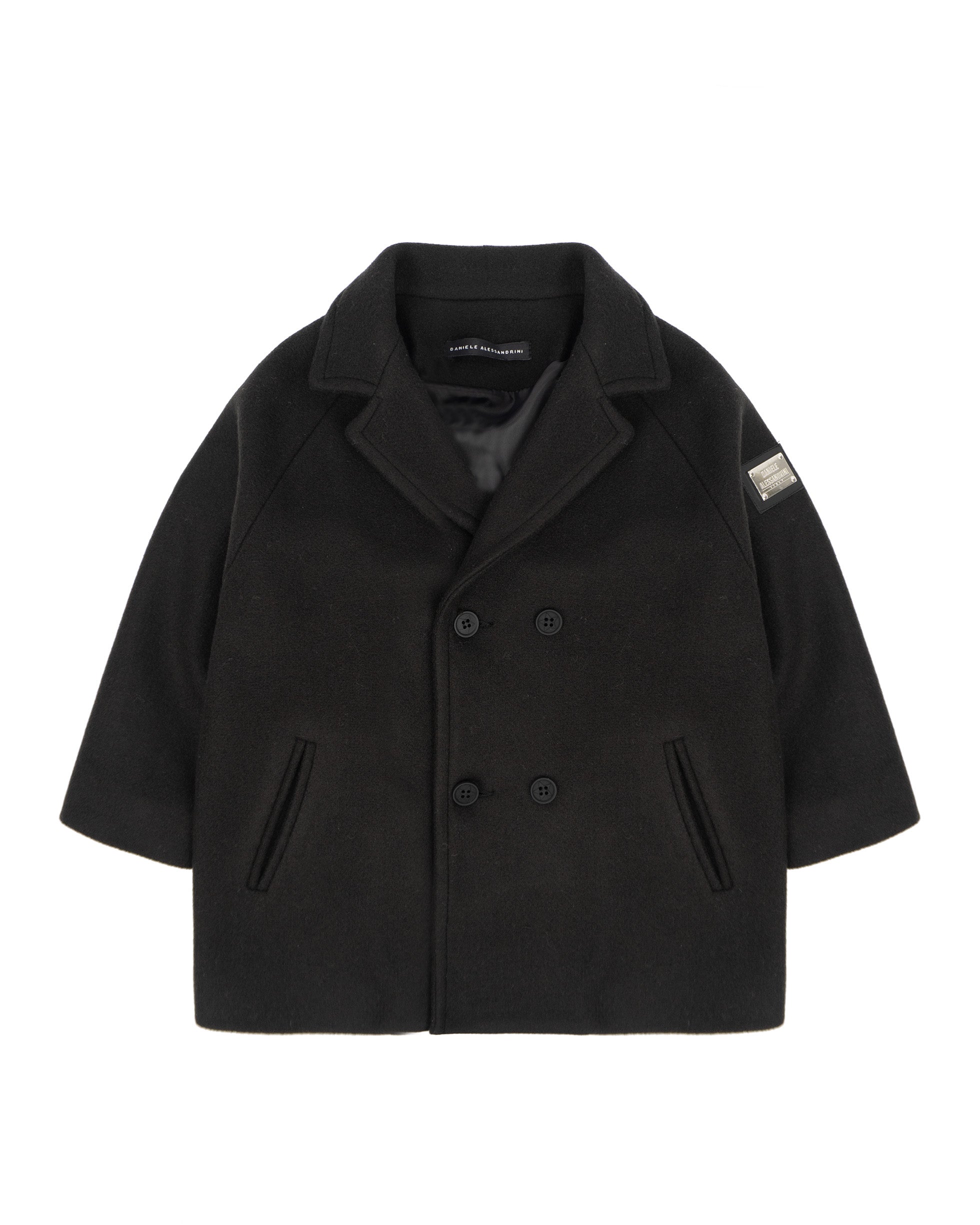 Il cappotto Alessandrini Kids nero per neonato è un capo elegante e versatile, perfetto per la stagione fredda. Realizzato in lana calda e morbida, presenta una chiusura doppiopetto con bottoni e un logo applicato sulla manica. Lo stile classico e la linea moderna lo rendono adatto a ogni occasione.