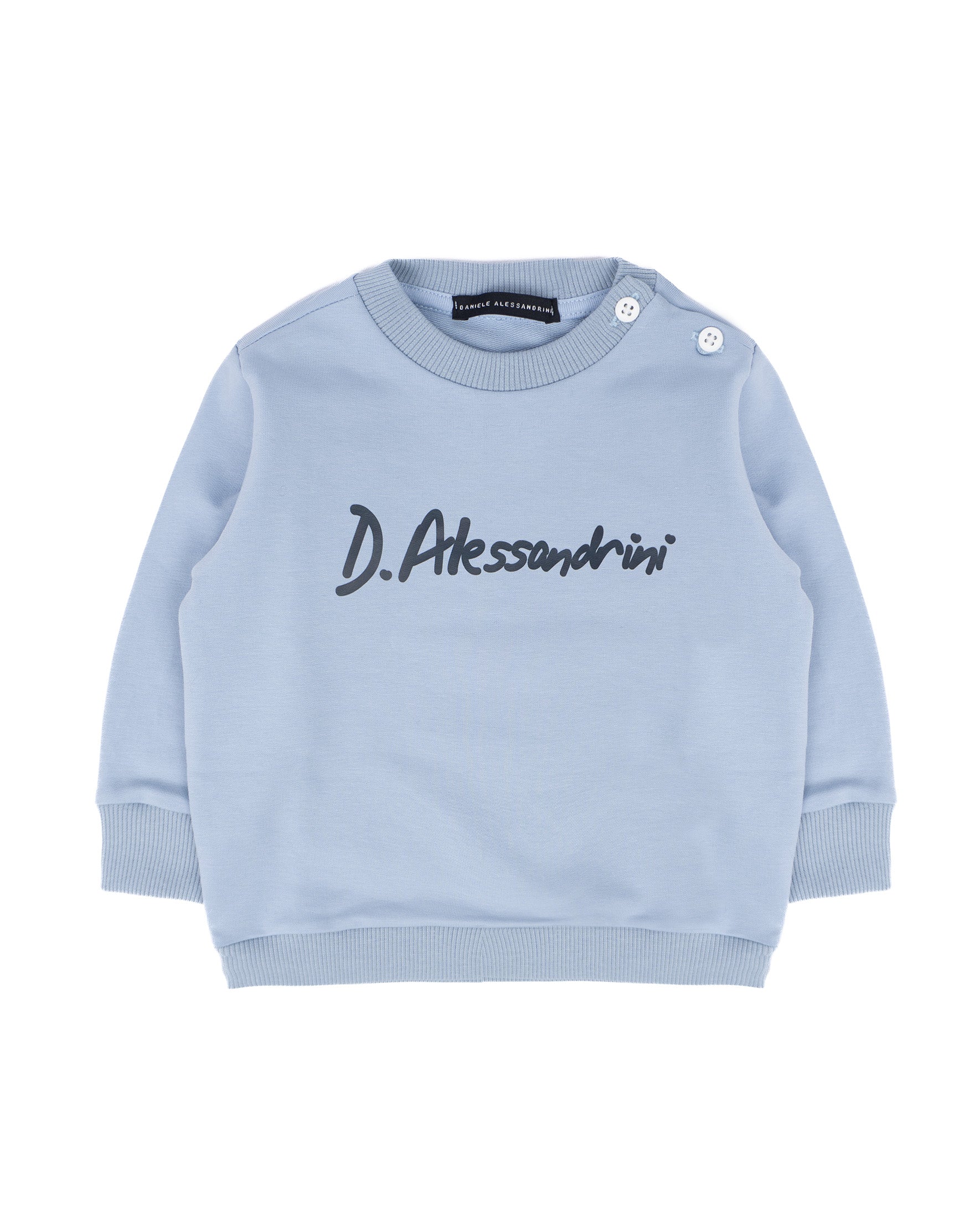 Alessandrini Kids Felpa Celeste con Logo Frontale e Bottoni sulla Spalla per Neonati