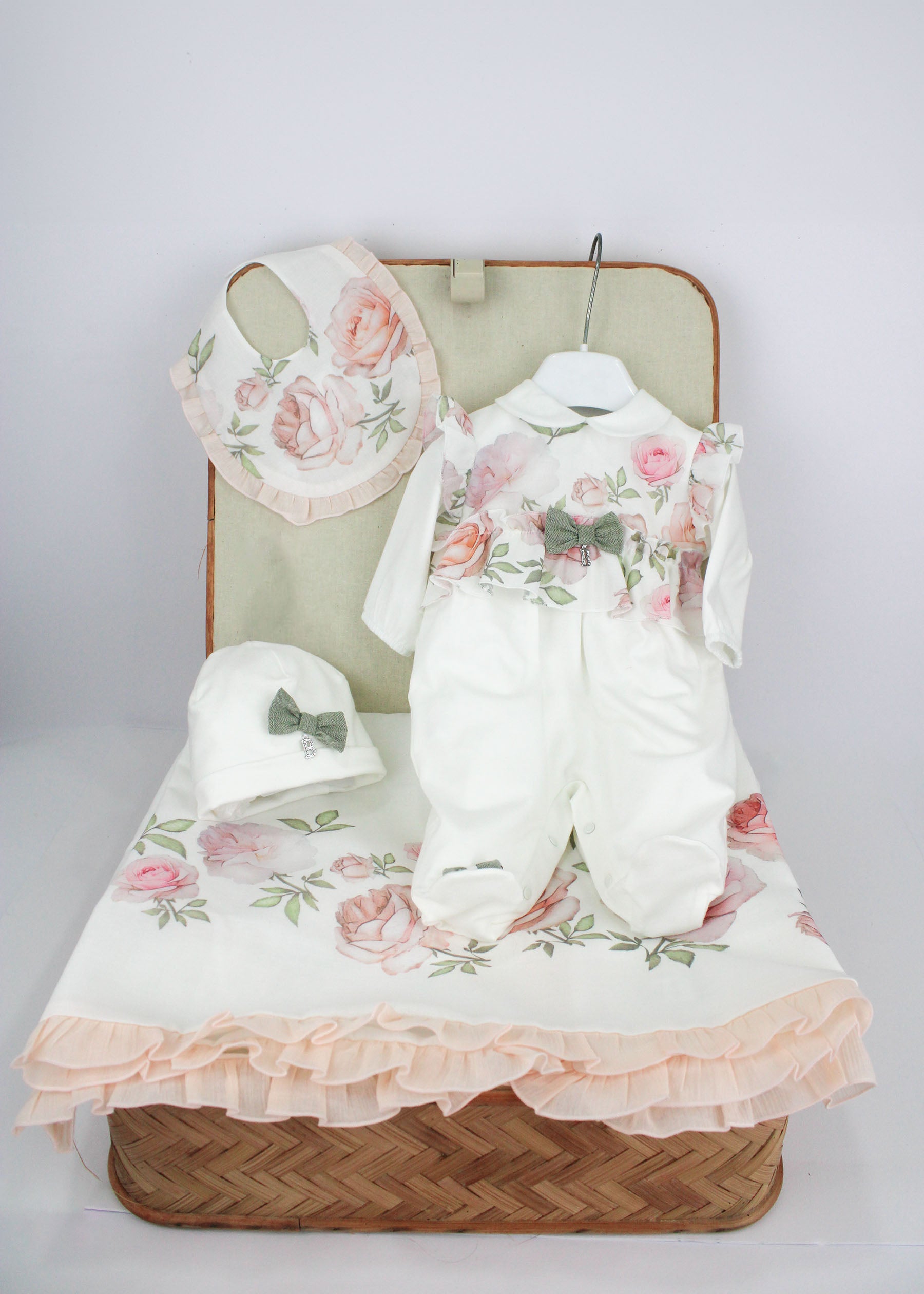 Barcellino Tutina Panna con Fantasia Floreale per Neonate (Taglia)1M