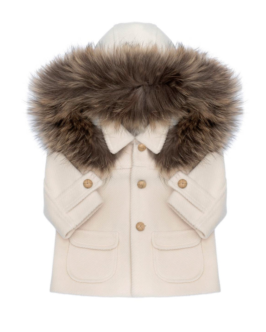 Barcellino Kids Cappotto Panna con Pelliccia Finnraccoon per Neonate