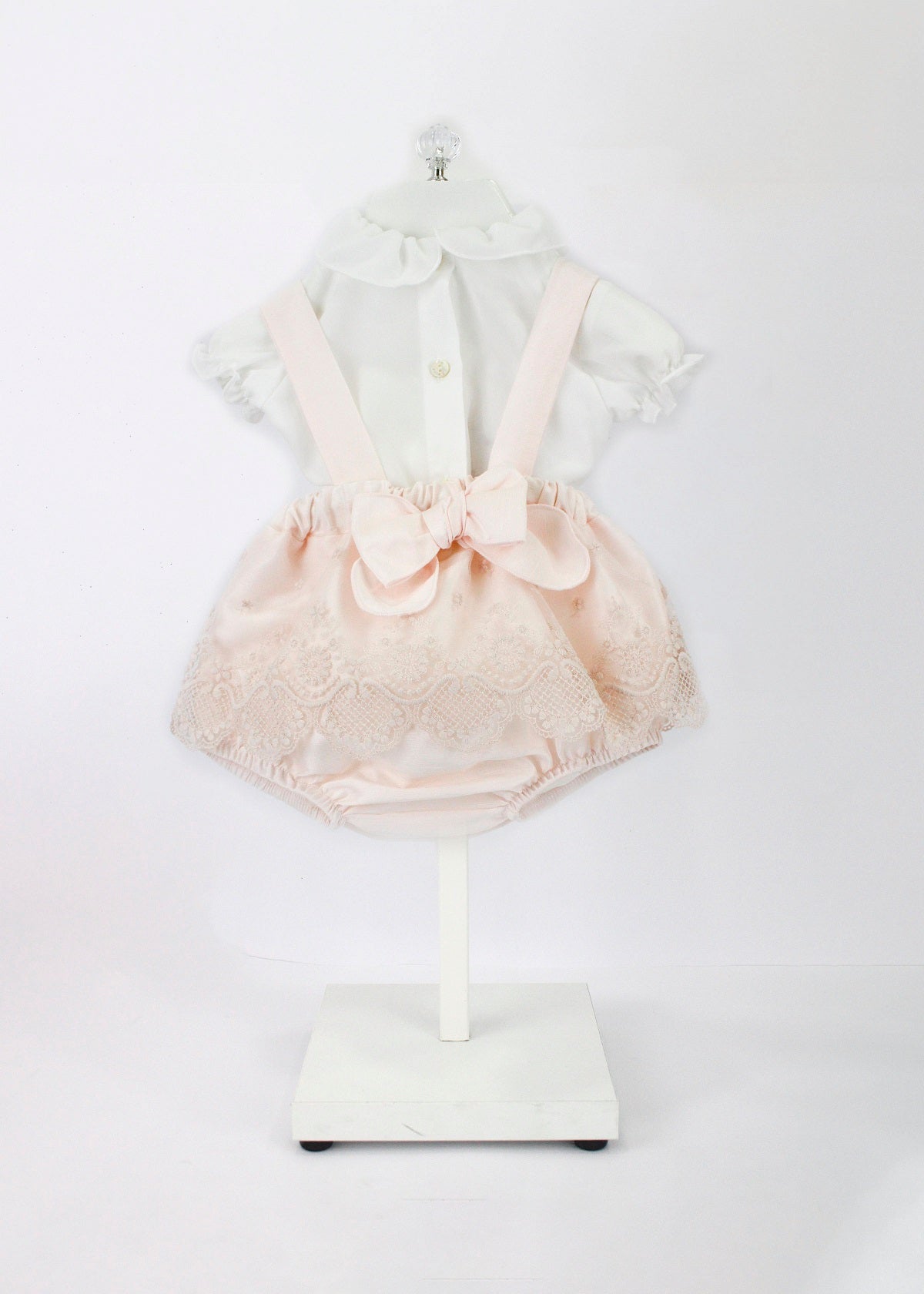 Barcellino Salopette Rosa con Fiocco con T-shirt Bianca per Neonate