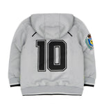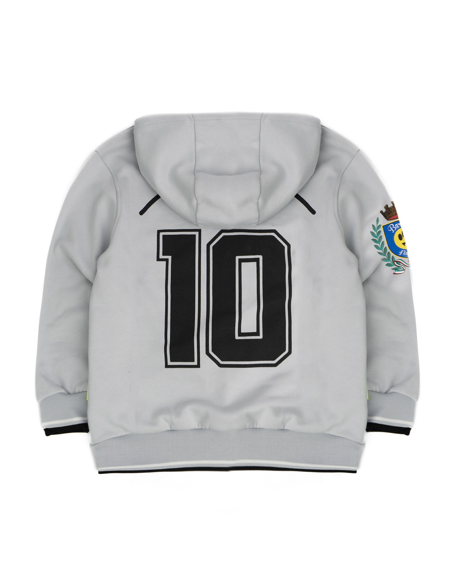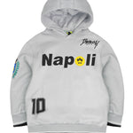 Il design con cappuccio e maniche lunghe è arricchito dalla stampa “NAPOLI” sul petto, dal numero “10” sul retro e dallo stemma applicato sul braccio, che conferiscono un carattere sportivo e unico al capo. Un modello versatile che abbina praticità e tendenza, pensato per outfit casual di grande impatto.