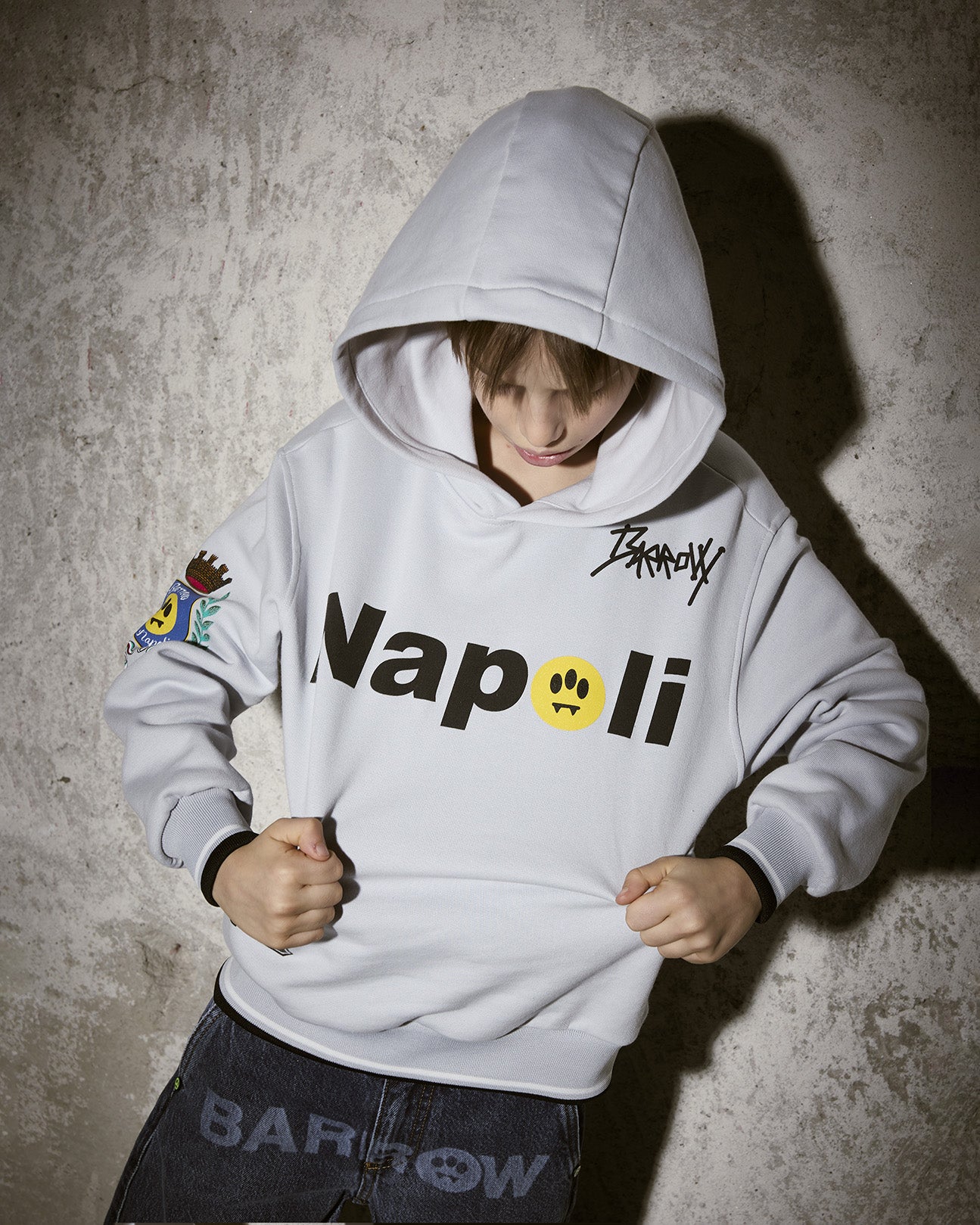 La Barrow Kids felpa niagara con cappuccio e stampa Napoli unisex per bambini è il capo ideale per chi ama lo streetwear e vuole distinguersi con uno stile deciso e contemporaneo. Realizzata in morbido cotone felpato 100%, garantisce comfort e resistenza, perfetta da indossare ogni giorno.