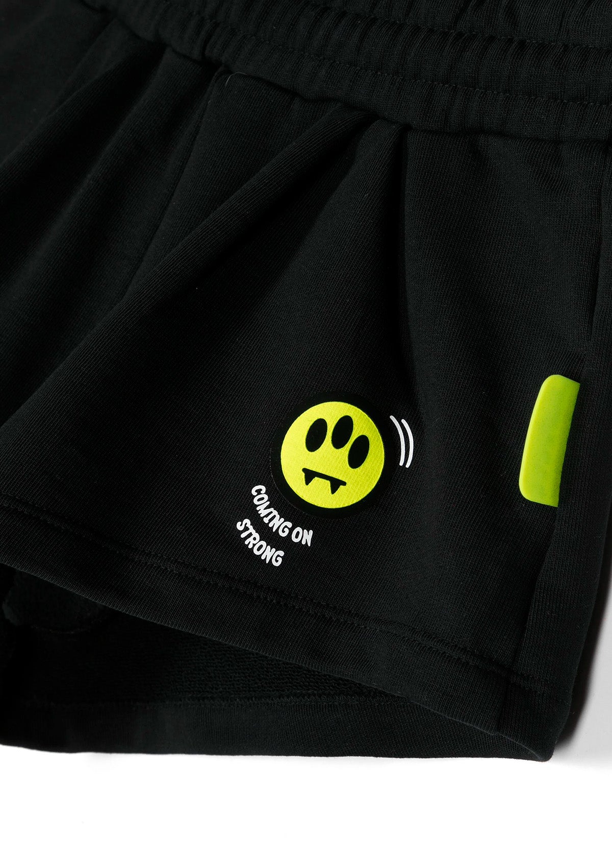 Gli shorts neri di Barrow Kids, proposti da Florence Kids, offrono una combinazione impeccabile di stile e comfort per le giovani fashioniste. Creati in cotone di qualità, questi shorts presentano un design versatile in nero, arricchito da una distintiva applicazione con logo e da una mini targhetta con logo, segni distintivi dell'impegno del brand per l'eleganza e l'autenticità. Con una vita elasticizzata per una vestibilità ottimale e una gamba ampia che termina sopra al ginocchio, questi shorts sono progettati per garantire libertà di movimento e un aspetto alla moda. La fodera in tessuto tecnico assicura ulteriore comfort durante il gioco o in qualsiasi avventura estiva. Ogni capo è accompagnato da un codice QR di autenticità, confermando la qualità e l'originalità dei prodotti Barrow Kids.