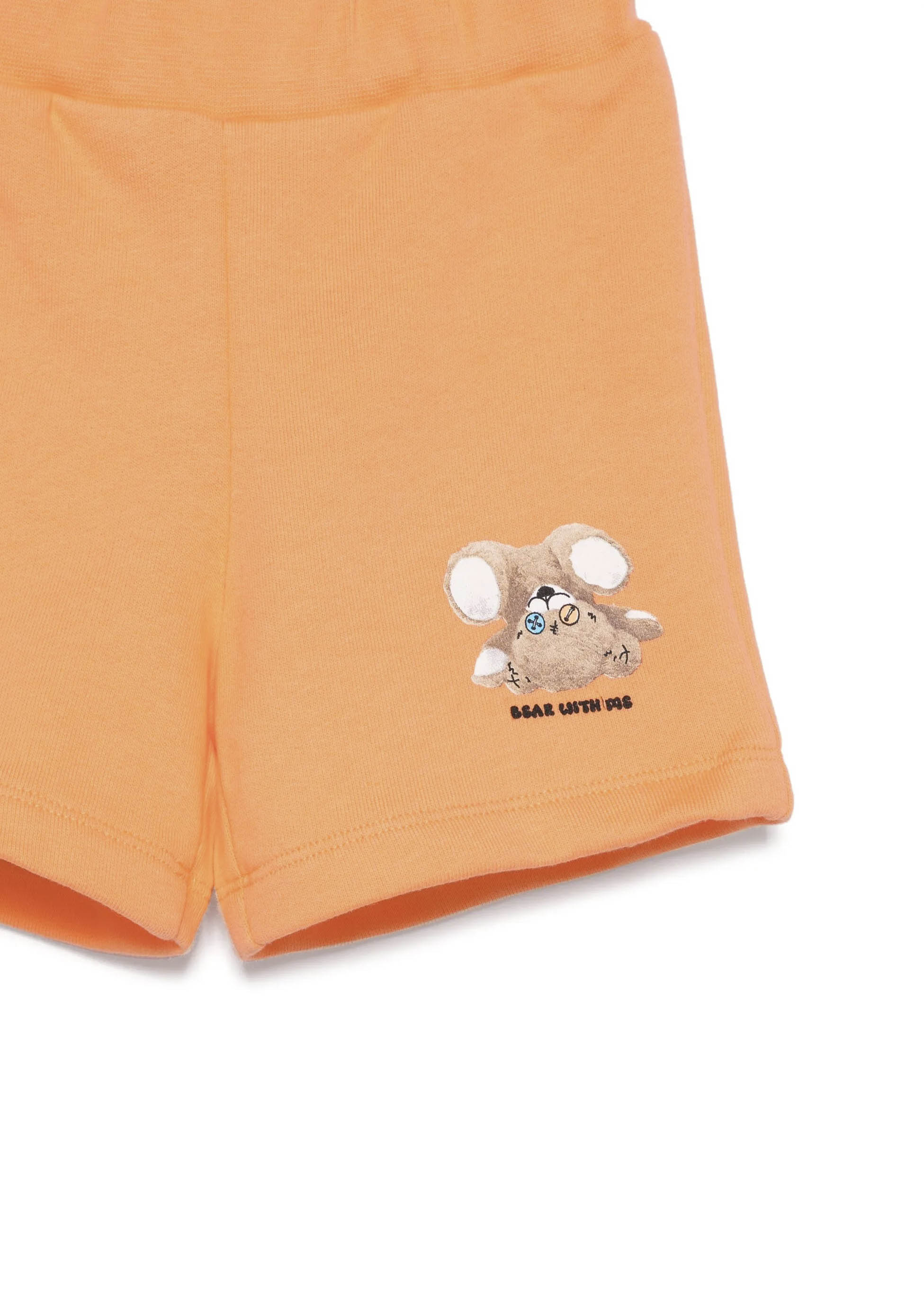 Barrow Kids T-shirt Bianca con Stampa Retro con Shorts Pesca per Neonati