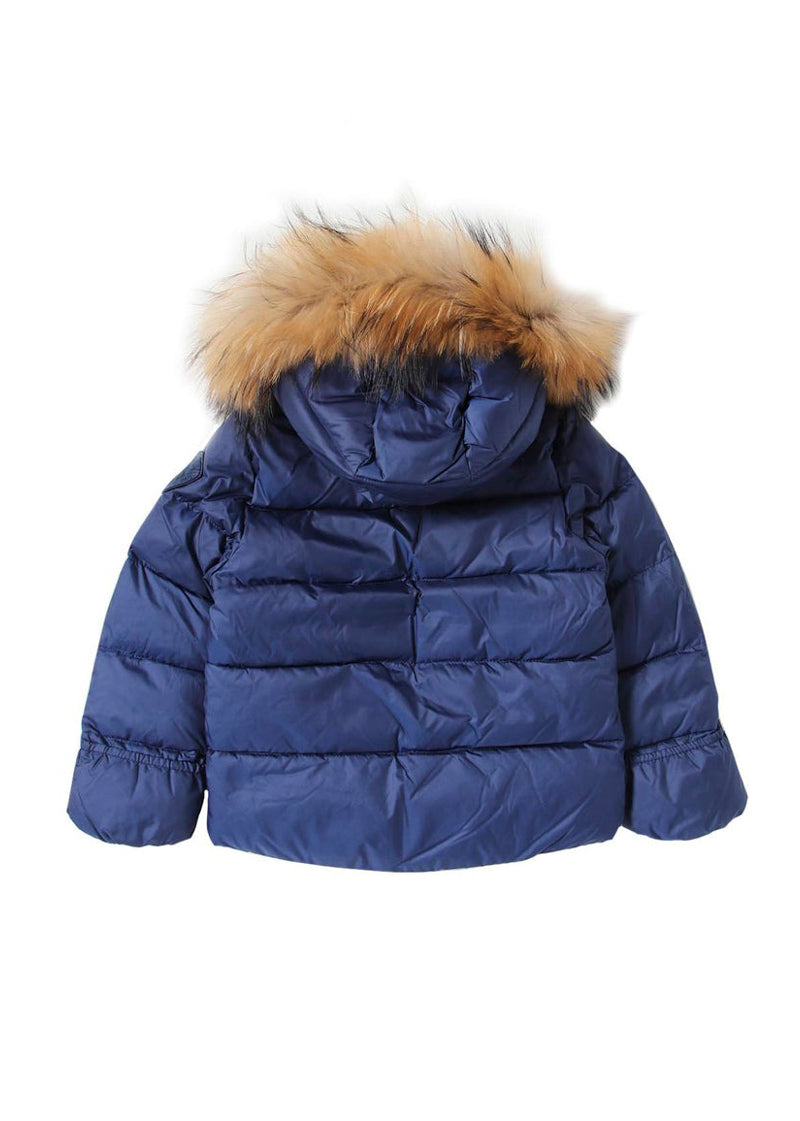 Il giubbino blu Amory per neonati di Blauer Kids è un piumino trapuntato elegante e funzionale, caratterizzato da righe orizzontali e un design moderno. Realizzato in microfibra di poliestere e imbottito con ovatta Sorona® Aura, garantisce una protezione calda e leggera senza appesantire. Il cappuccio fisso e il bordo in vera pelliccia removibile aggiungono un tocco di stile e comfort. Le tasche con automatico, la chiusura con zip invisibile e il fondo manica con manopolina completano questo capospalla versatile, ideale per le giornate fredde.